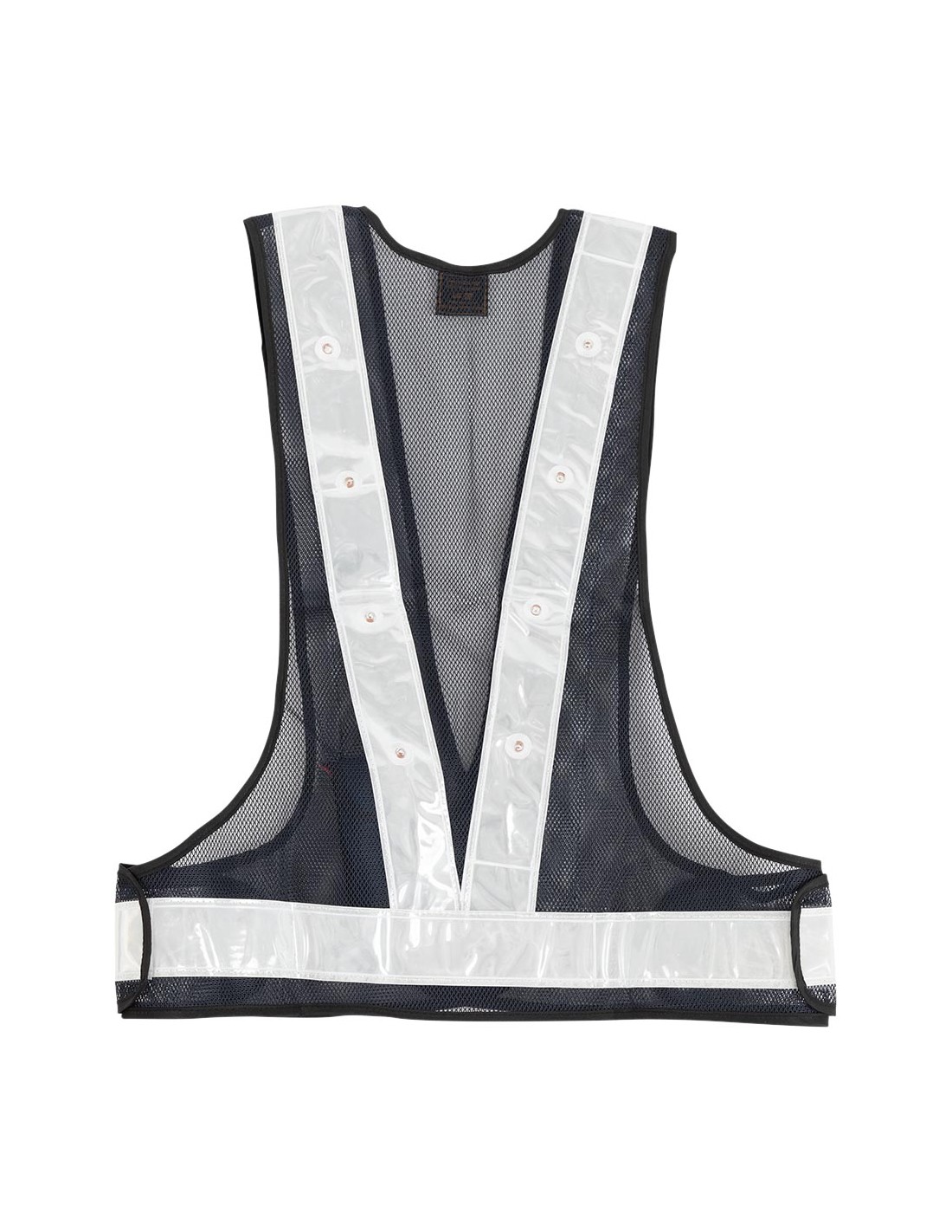 The vest contains a reflective, white stripe to increase visibility. The LED lights are white on the front and red on the back. The lights have no less than three modes: fast flashing, slow flashing and switched on without flashing. On the inside of the vest there is a pocket with Velcro closure for the battery holder with on/off button for the lights.