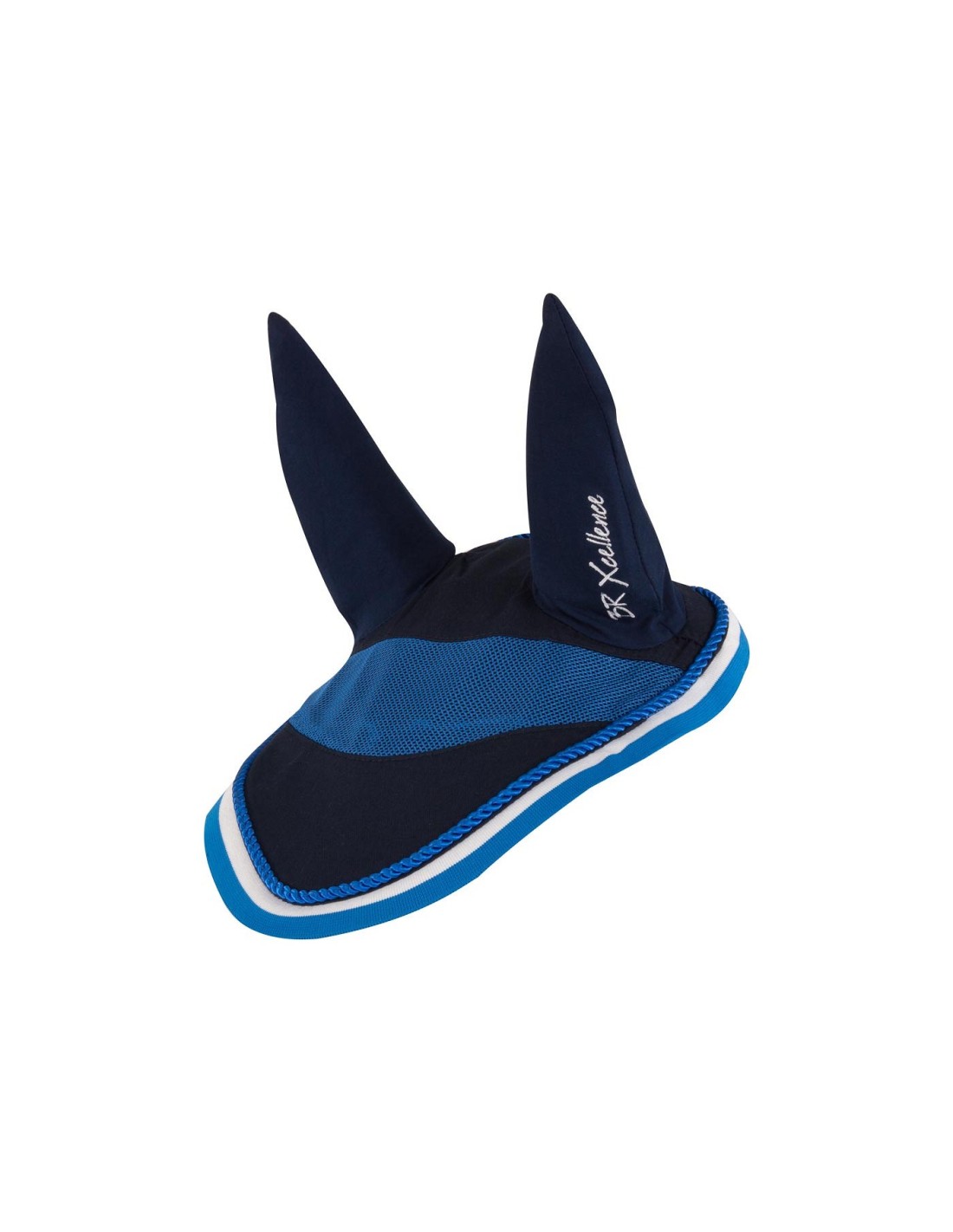 This poly cotton ear bonnet has flexible ears made of Lycra, which allow for optimum freedom of movement. The ear bonnet features a decorative mesh insert at the front and embroidery on the left ear. Its two-coloured knitted binding perfectly follows the shape of the horse’s head, thus allowing a perfect fit. The binding is trimmed with contrast piping. Machine washable at 30°C. This ear bonnet can be combined with several other items in the same colour from the Xcellence range.