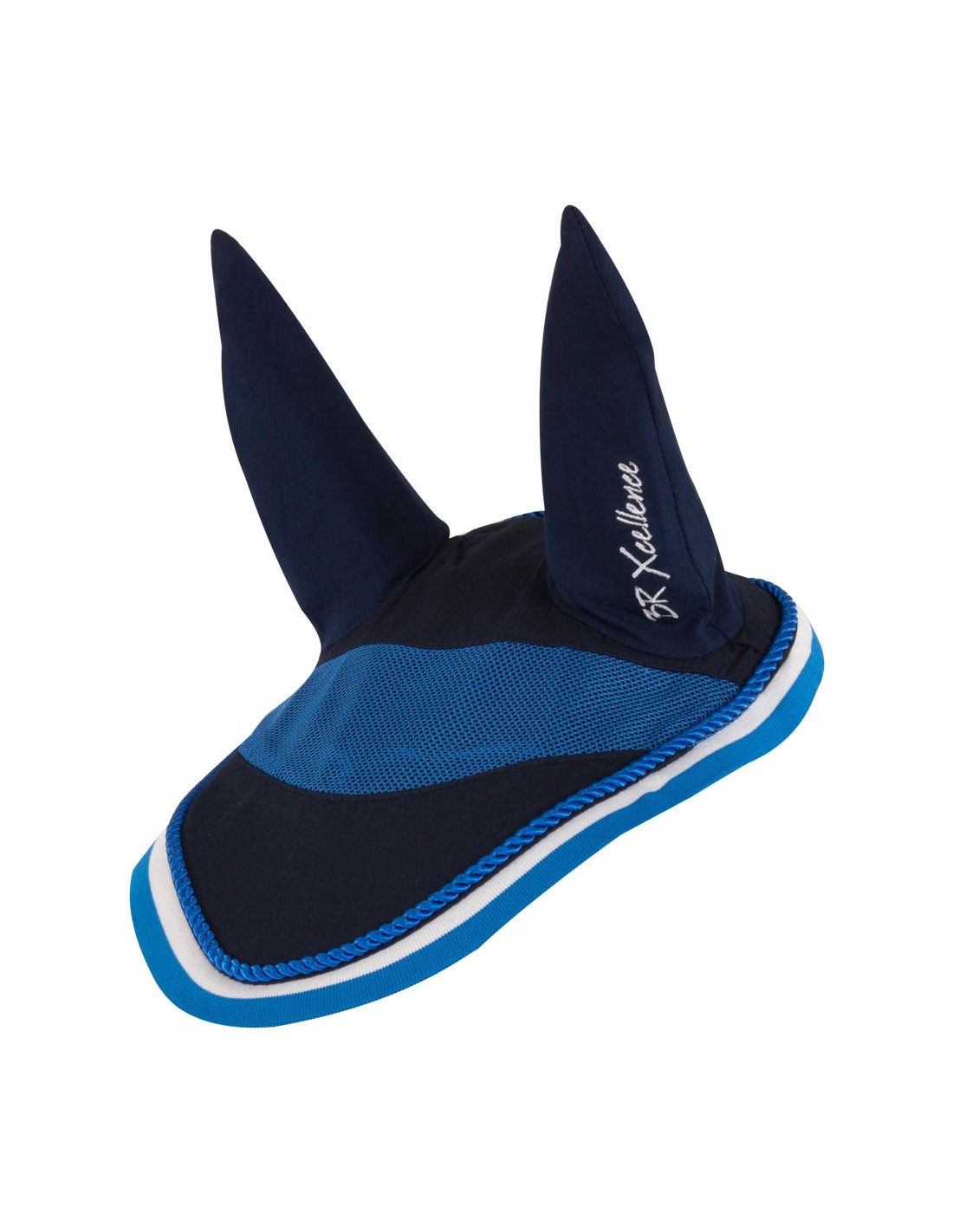 This poly cotton ear bonnet has flexible ears made of Lycra, which allow for optimum freedom of movement. The ear bonnet features a decorative mesh insert at the front and embroidery on the left ear. Its two-coloured knitted binding perfectly follows the shape of the horse’s head, thus allowing a perfect fit. The binding is trimmed with contrast piping. Machine washable at 30°C. This ear bonnet can be combined with several other items in the same colour from the Xcellence range.