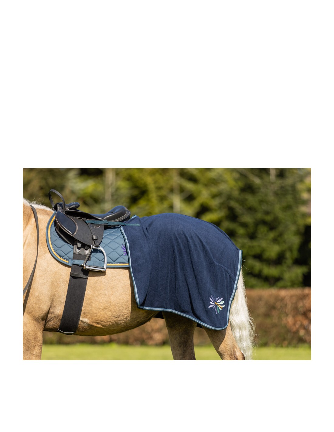 The Mini-Horse exercise rug is colourful and specially designed for the smallest horse breeds and ponies. The rug keeps the hindquarters dry and warm during warm-up and cooling down to ensure that your horse does not get cold. The exercise rug has a double stitched back seam and is formed where the back of the saddle is placed. The rug stays firmly on the horse's back thanks to the strong retaining straps with Velcro that attach the rug to the saddle. The fillet string has a handy plastic cover to make it easy to clean.