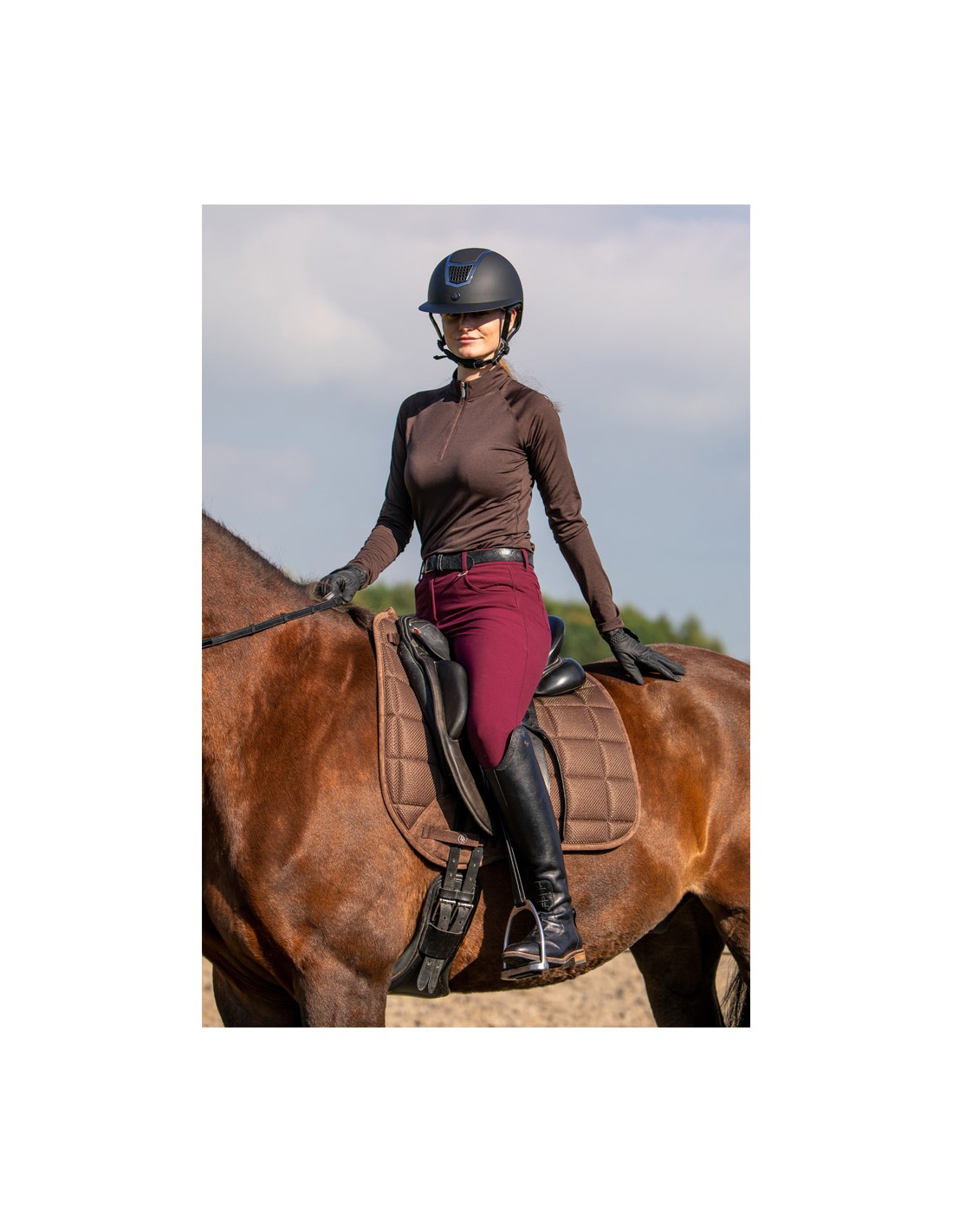The BR riding helmet Lambda Plus stands out for its sleek design with a painted top, the handy ventilation holes and the large visor.