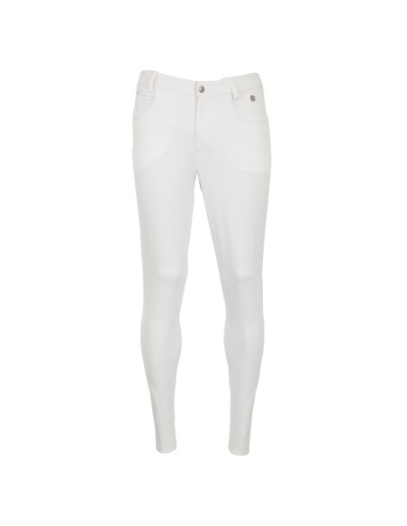 Chic mens competition breeches without unnecessary additions. The breeches have two jeans pockets in front and a coin pocket above the right jeans pocket. The two back flap pockets have a button closure. The breeches are decorated with a silver coloured metal BR logo above the left pocket, a BR stud in the corner of the coin pocket and a subtle BR logo at the back of the waistband. Elastic inserts on the bottom of the riding breeches guarantee optimal comfort.