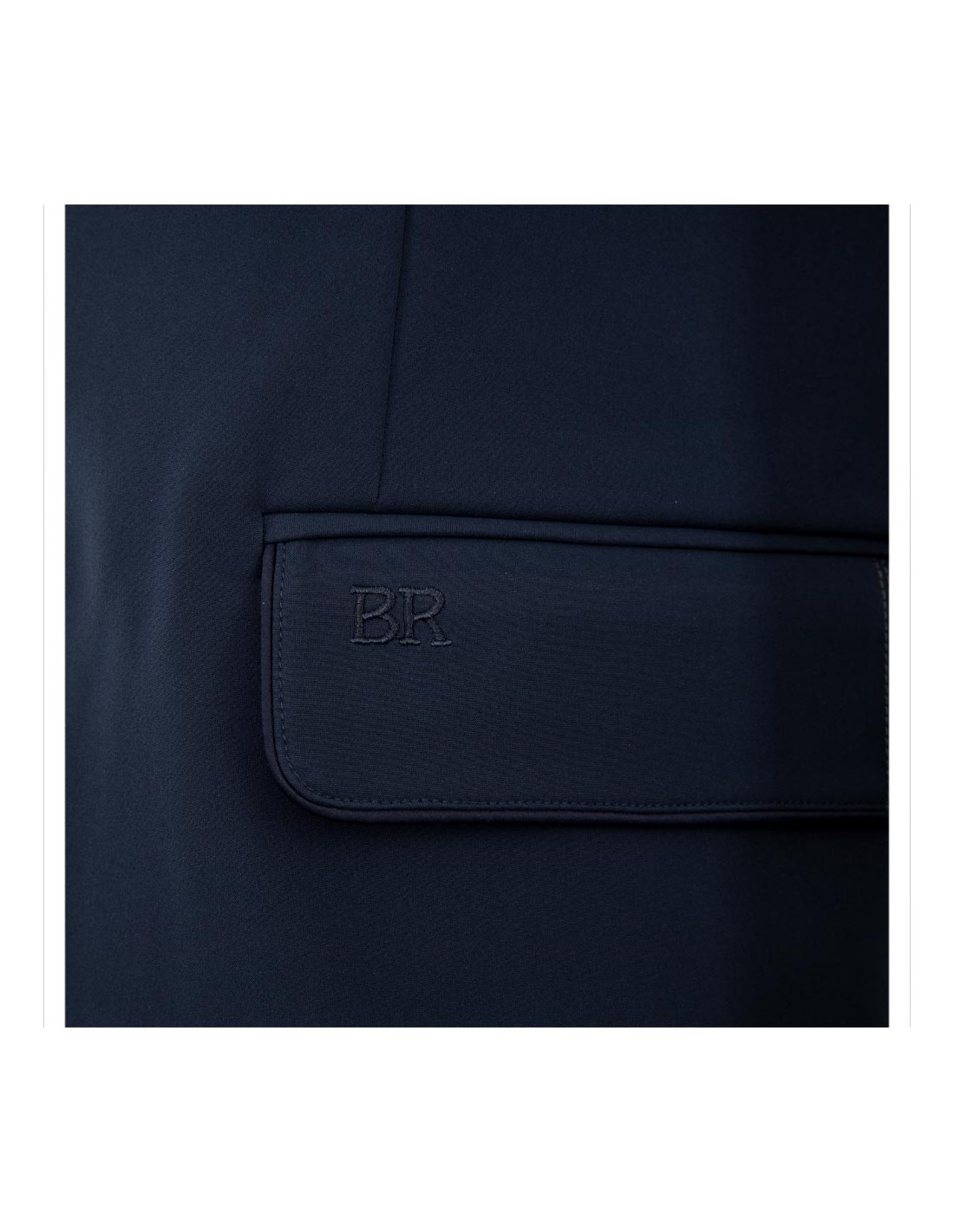 The jacket features three synthetic BR buttons at the front. The cuffs have been fitted with similar buttons in a smaller size. It features two flap pockets and a zipper pocket at the front and two vents at the back. One of the flap pockets features a BR embroidery. The cut of the jacket and the decorative stitching complete this jacket in an elegant way.