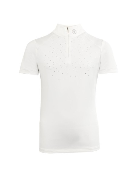 This chic competition shirt for kids is moisture-wicking and quick-drying. It has a comfortable, slim fit thanks to the stretch material it is made of.