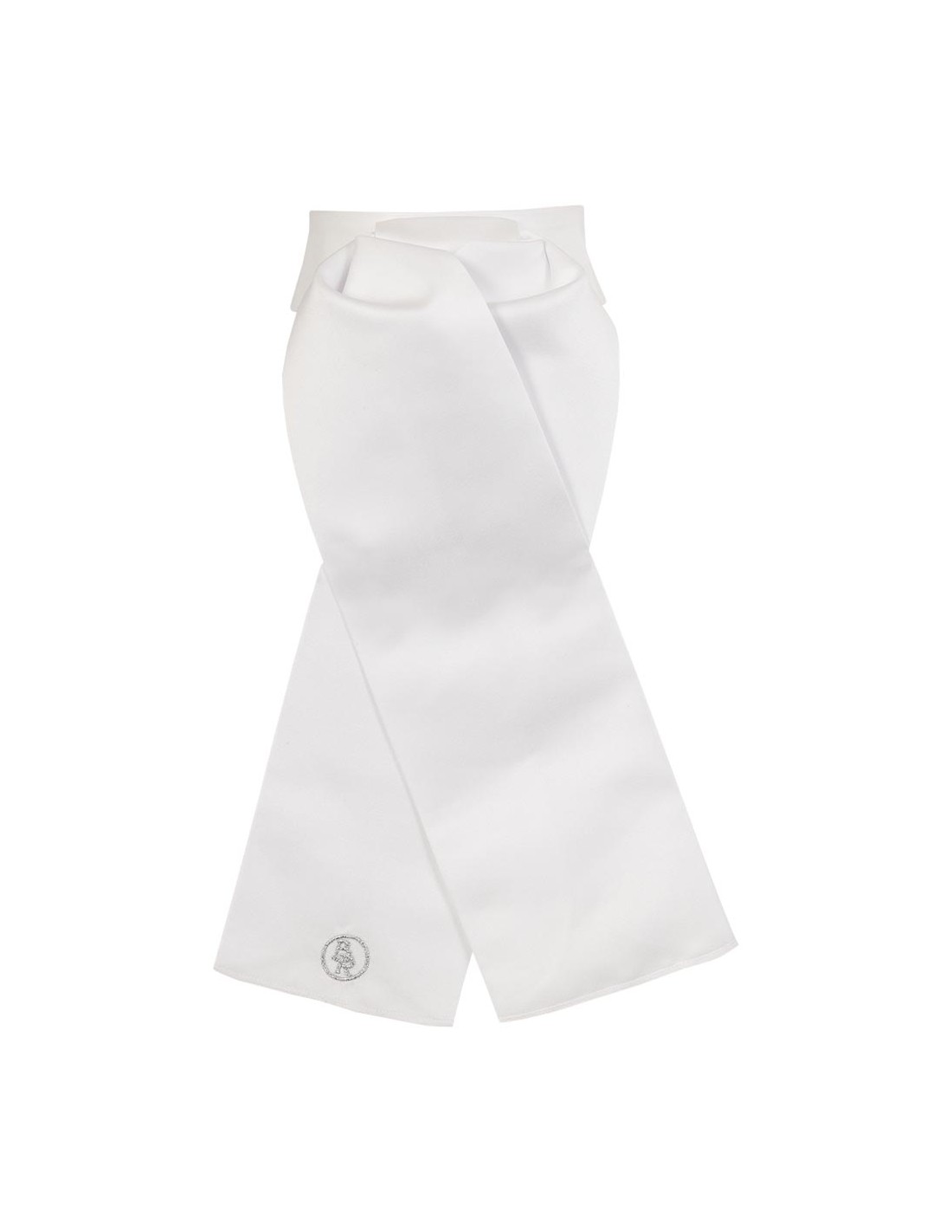 This beautiful stock tie made of soft polyester satin has a Velcro closure at the back and a detachable front flap. You can wear this model in a classic way with a stock pin, where the pin makes the plastron stand out more. The stock tie is also stylishly finished with a silver BR print and silver embroidery.