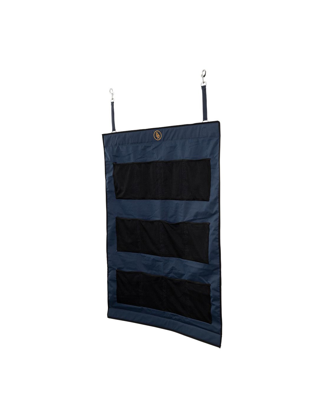 The stable organizer is perfect for storing your horse equipment and care products. It contains no less than 12 mesh pockets with elastic (16x20 cm). The top is extra reinforced and here you can also find the two hooks to hang the stable organizer.