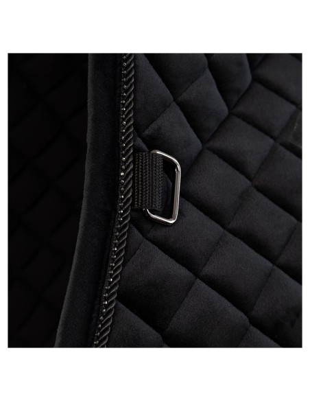 The chic Opulence saddle pad has a beautiful velvet exterior and is surrounded by a radiant cord trim with small shiny stones. This saddle pad is guaranteed to steal the show.