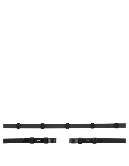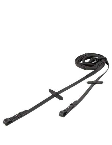 This durable rein is made of very sturdy webbing from Biothane and reinforced with nylon. It is a sustainable alternative to leather. The rein is equipped with anti-slip material and contains seven stops.
