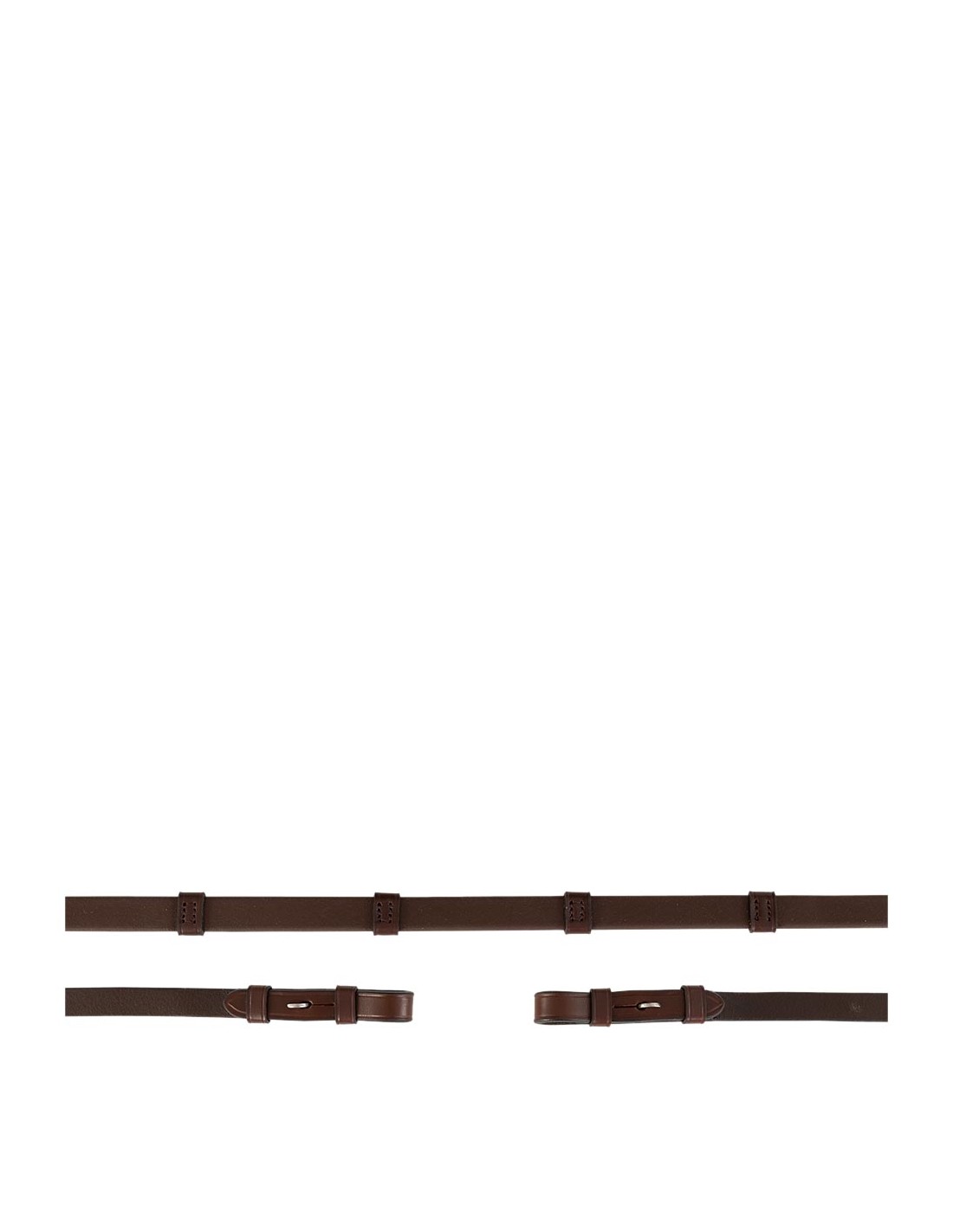 This durable rein is made of very sturdy webbing from Biothane and reinforced with nylon. It is a sustainable alternative to leather. The rein is equipped with anti-slip material and contains seven stops.