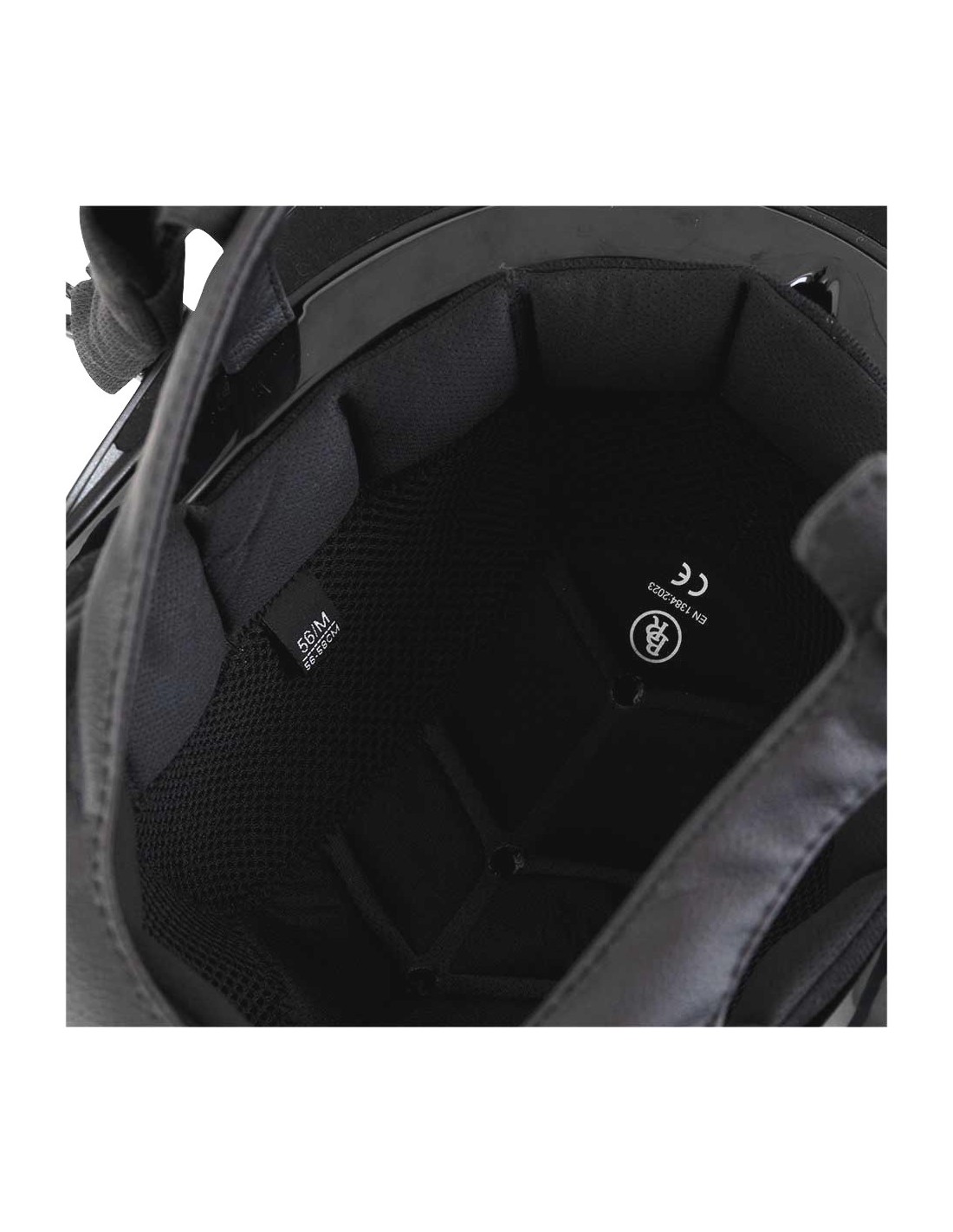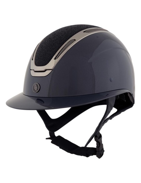 The BR riding helmet Zeta Sparkling has a lightweight shell made of ABS and is equipped with gracefully shaped gunmetal-coloured ventilation holes for a wonderfully fresh feeling in the helmet. Order the removable lining in your size (item 549055). The lining is from Cooldry that is moisture-wicking and breathable for a fresh feeling. The closure of luxurious vegan leather is wonderfully soft, has a Cooldry protection for the chin and contains an extra foam filling at the back of the head.