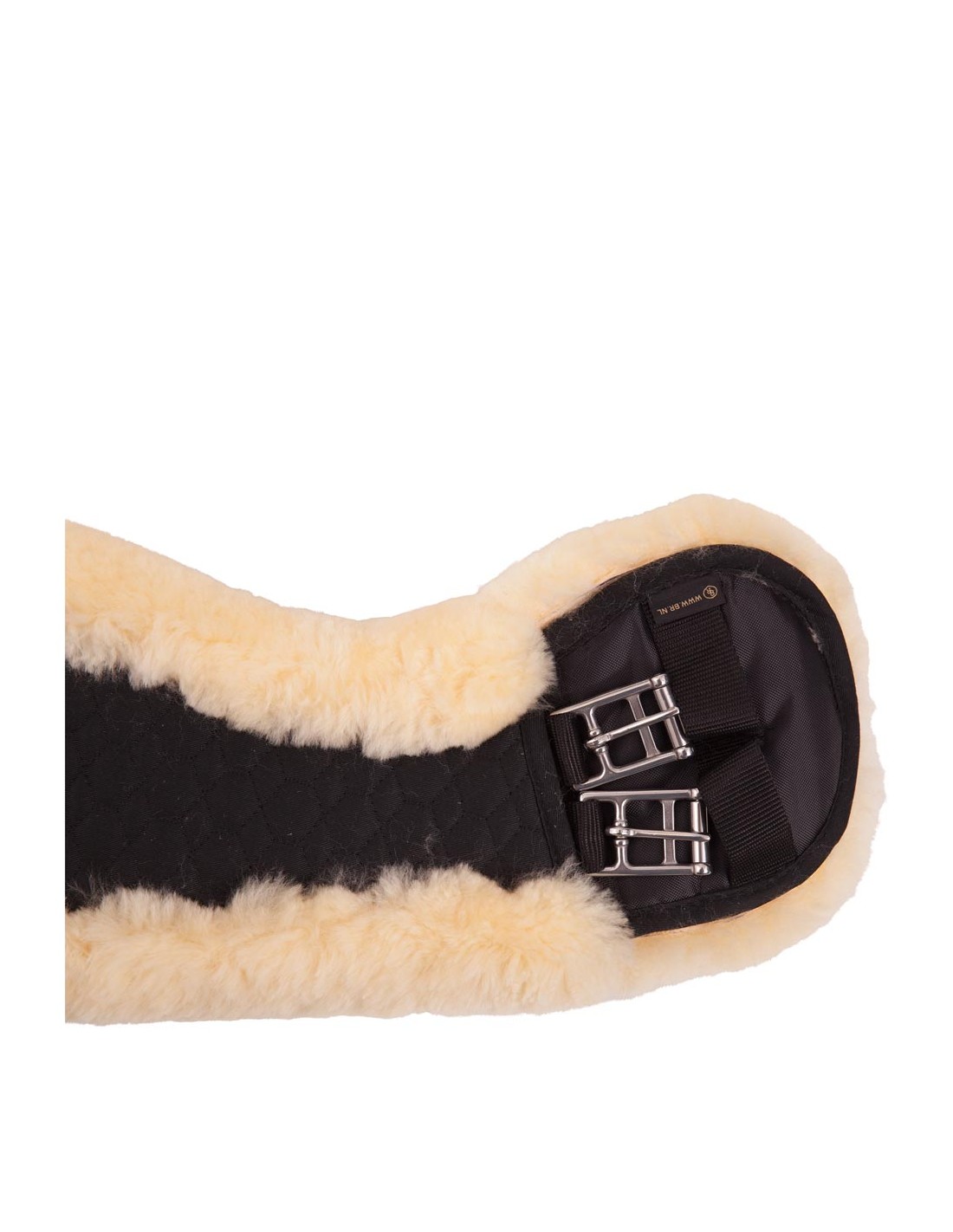 Anatomically formed, half-round dressage girth featuring medically tanned sheepskin. This half-round dressage girth provides more freedom of movement to the front legs. The girth is recommended when the position of the girth is close to the front legs of the horse, because it can prevent skin damage. With stainless steel buckles and a D-ring for the attachment of auxiliary reins.