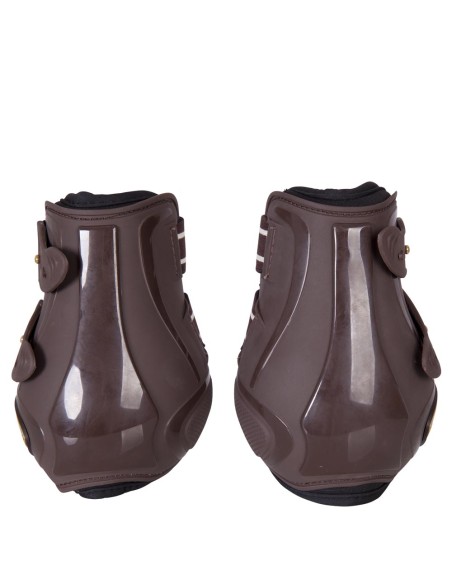High polyurethane fetlock boots (closed model) with soft neoprene lining and elastic, rubber quick release closures. The tendon boots have a perfect fit and enclose the fetlock.