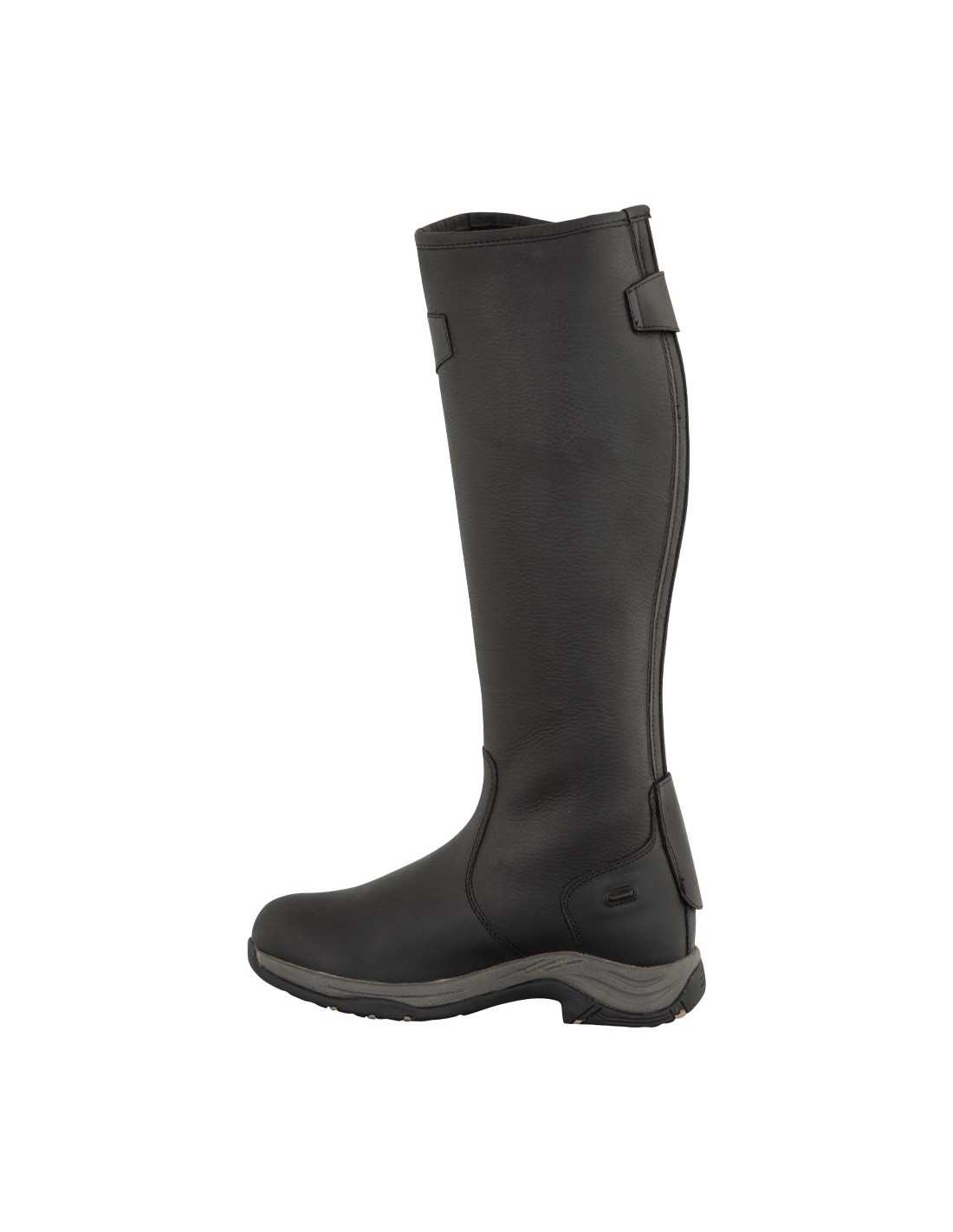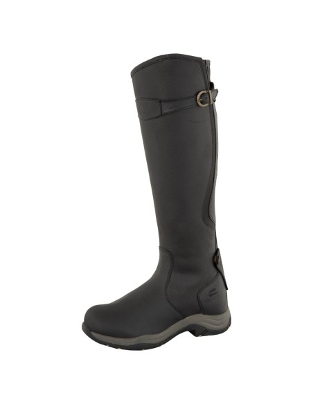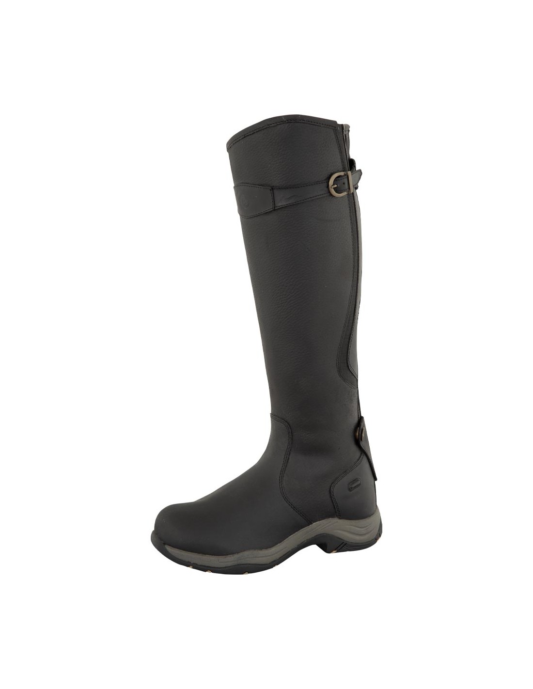 This solid winter riding boot is made of oiled nubuck leather and features a sturdy grip sole made of polyurethane and rubber. The oiled leather is water repellent and practically maintenance-free. The boot is lined with synthetic wool. Its shock-absorbing polyurethane insole features gel foam, which increases comfort. The boot features an extra strong YKK zipper with a zipper keeper at the top and base. In addition, the boot features two spur rests. The small elastic calf insert and the buckled strap are beneficial to the boots comfort as well as its look. The shaft leather features a grain texture, while the foot, heel and buckled strap are made of smooth leather. The boot is particularly suited for riding, but can definitely be worn in the stable and for casual purposes as well.