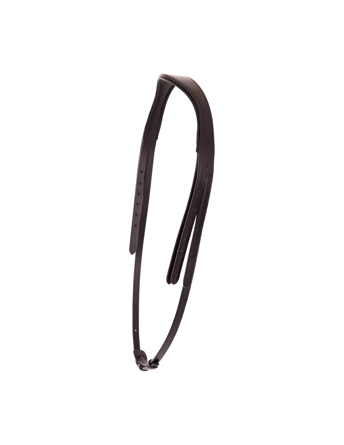 Cette têtière symétrique et anatomique a une doublure douce. La forme E ronde offre plus de liberté derrière les oreilles du cheval.