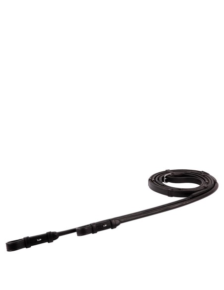 Rênes en toile avec caoutchouc sur lintérieur pour plus dadhérence. À crochets, avec arrêtoirs, 16 mm. Les extrémités sont faits de cuir arrondi.