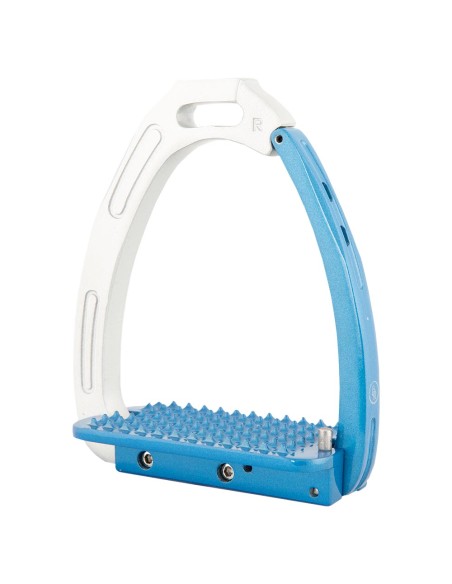 Cet étrier est réalisé en aluminium galvanisé avec un revêtement en poudre et est renforcé à l'intérieur avec de l'acier inoxydable pour une résistance accrue. L’étrier est pourvu d’un mécanisme de sécurité magnétique. Le poids du cavalier permet de déclencher l'ouverture de l’étrier en cas de chute. De cette manière le pied ne reste pas coincé dans l’étrier. Dès que le pied est sorti de l’étrier, l’étrier se ferme automatiquement. Le porte-étrivière légèrement galbé assure une bonne position de l’étrier, de sorte que le pied soit en bonne position. Cela donne plus de stabilité au cavalier et améliore la position de la jambe.