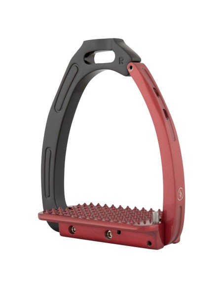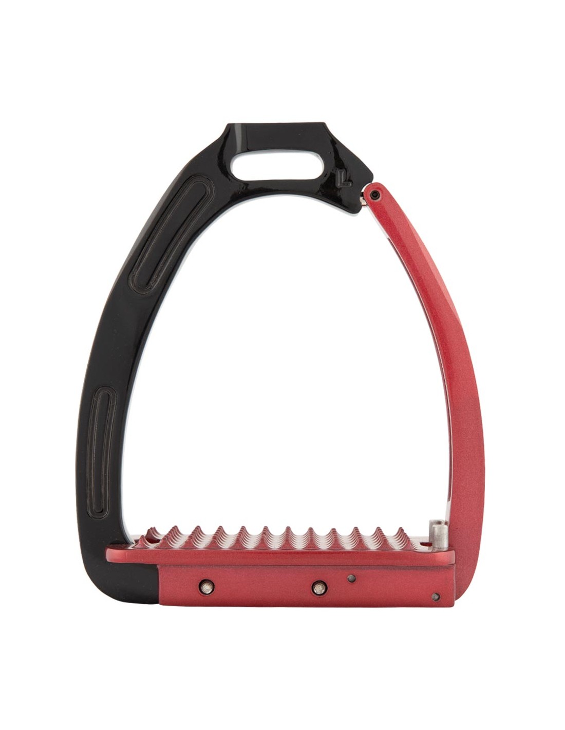 Cet étrier est réalisé en aluminium galvanisé avec un revêtement en poudre et est renforcé à l'intérieur avec de l'acier inoxydable pour une résistance accrue. L’étrier est pourvu d’un mécanisme de sécurité magnétique. Le poids du cavalier permet de déclencher l'ouverture de l’étrier en cas de chute. De cette manière le pied ne reste pas coincé dans l’étrier. Dès que le pied est sorti de l’étrier, l’étrier se ferme automatiquement. Le porte-étrivière légèrement galbé assure une bonne position de l’étrier, de sorte que le pied soit en bonne position. Cela donne plus de stabilité au cavalier et améliore la position de la jambe.