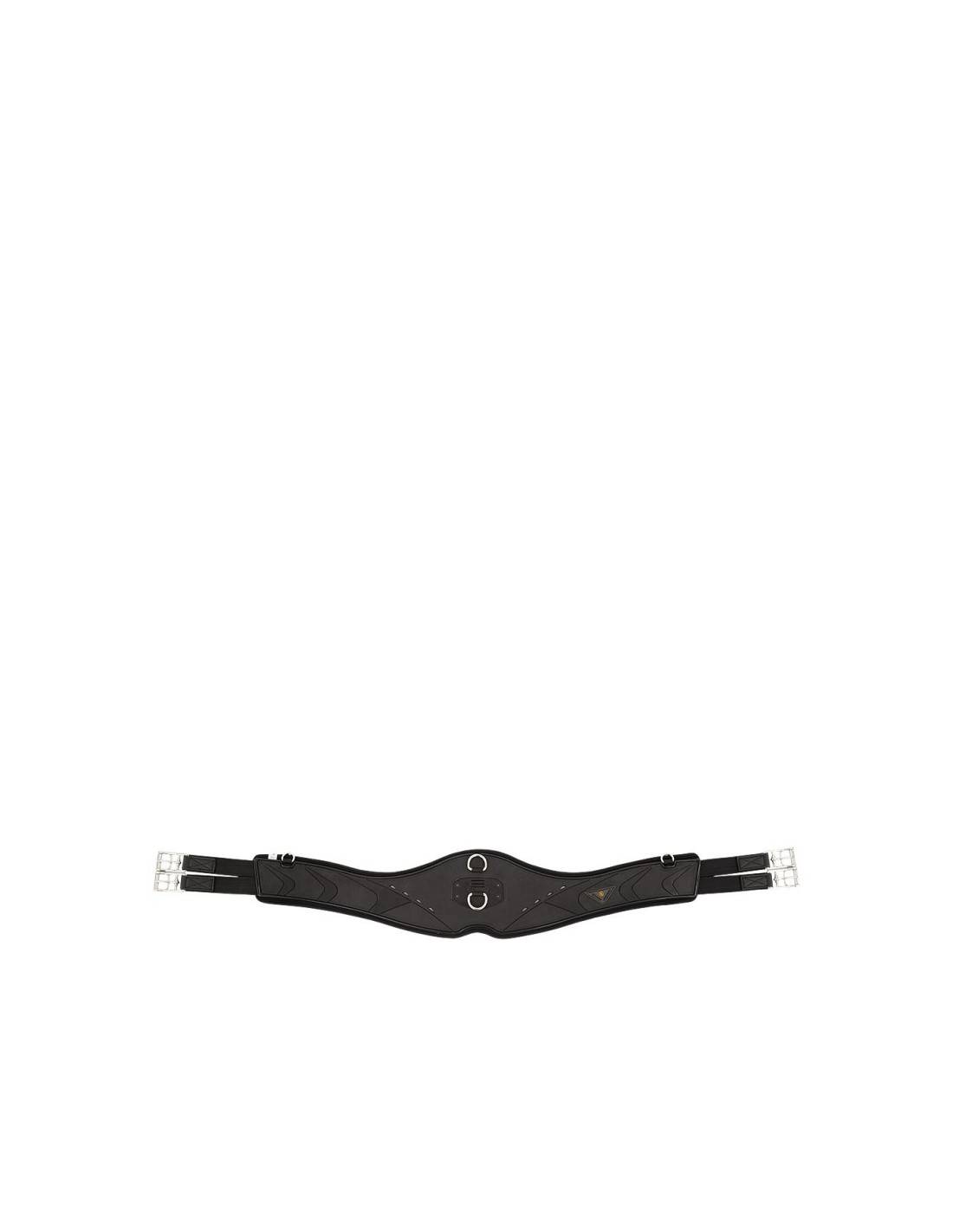La sangle mixte Poly Anatomic est dotée d'une doublure en néoprène douce. La conception anatomique de la sangle donne au cheval une liberté de mouvement optimale. La sangle a un élastique des deux côtés et d'élégantes boucles à rouleaux. Les extrémités élastiques offrent plus de confort et le cheval se sangle ainsi plus facilement. Il y a deux anneaux en forme de D au milieu et un petit anneau en D des deux côtés pour la fixation de toutes les rênes auxiliaires. La sangle est facile à nettoyer.