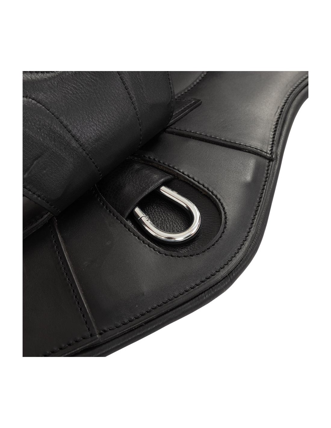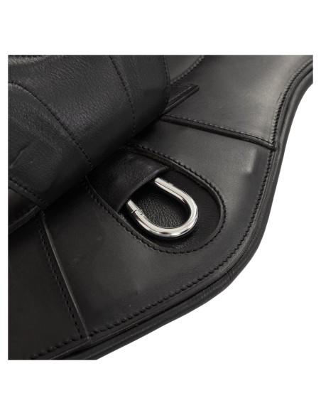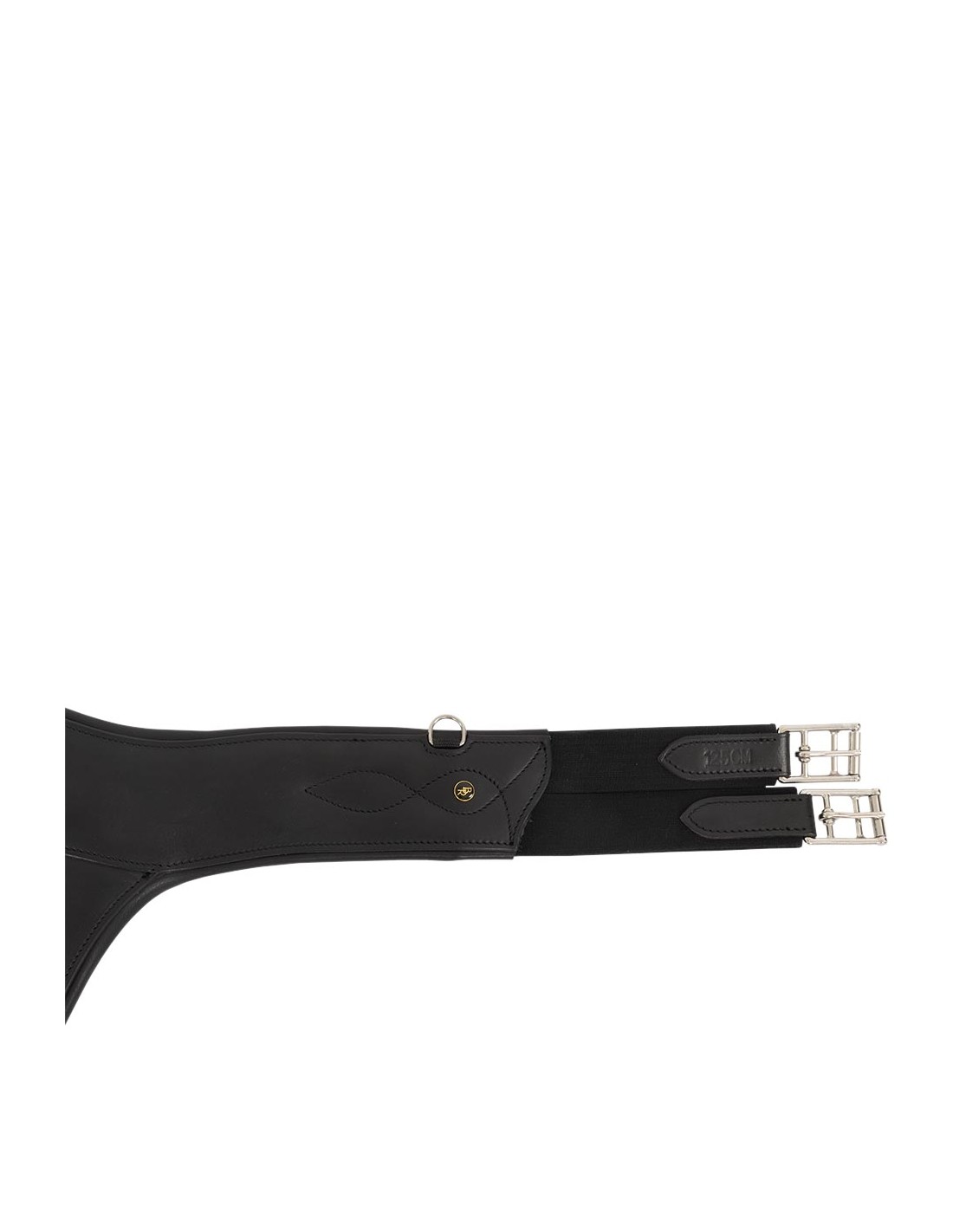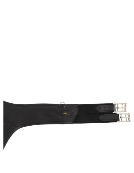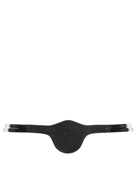 La bavette donne une protection optimale pour le ventre du cheval en saut d’obstacles. La conception anatomique de cette sangle procure une liberté de mouvements optimale pour le cheval. La sangle contient les extrémités élastiques de chaque côté et d'élégantes boucles de rouleau en acier inoxydable. Les extrémités élastiques offrent un confort supplémentaire ce qui facilite également le sanglage. Au milieu, il y a un mousqueton et sur les côtés, il y a deux petits anneaux en D pour la fixation des rênes auxiliaires. Les surpiqûres décoratives complètent élégamment la sangle.