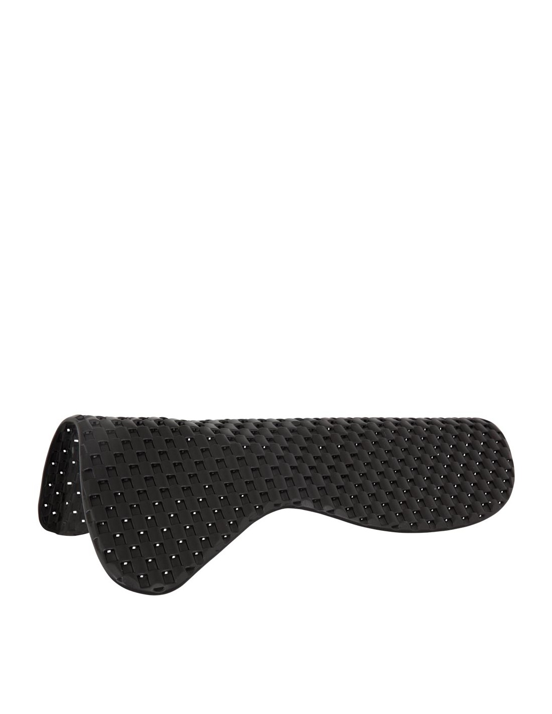 Cet amortisseur de forme anatomique en soft gel thérapeutique est réalisé à l’aide d’une nouvelle technologie brevetée. La texture du gel innovante qui est ainsi créée est particulièrement légère et ouverte. Le design avec des carreaux creux et bombés et des petits trous sur le côté assure une circulation de l'air horizontale efficace et une absorption optimale des chocs. Les carreaux fonctionnent comme des coussinets qui assurent la circulation de l'air dès qu'ils sont enfoncés. Le dos du cheval reste de cette manière sec et confortable. De plus l’amortisseur assure une position de la selle stable. Le soft gel thérapeutique BR a d'excellentes propriétés antidérapantes, ne favorise pas la prolifération bactérienne et est non toxique. L’amortisseur peut être ainsi utilisé directement sur le dos du cheval, mais il peut également être utilisé entre la selle et le tapis de selle. Les amortisseurs soft gel BR s’adaptent à toutes les selles et sont lavables en machine à 30°C.