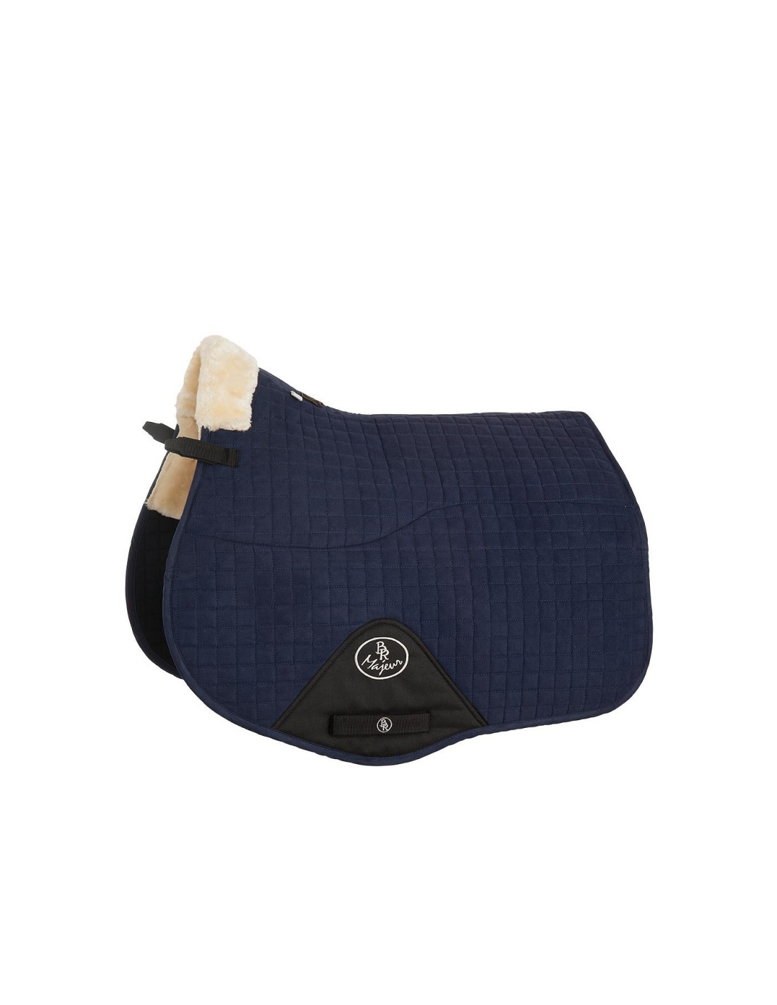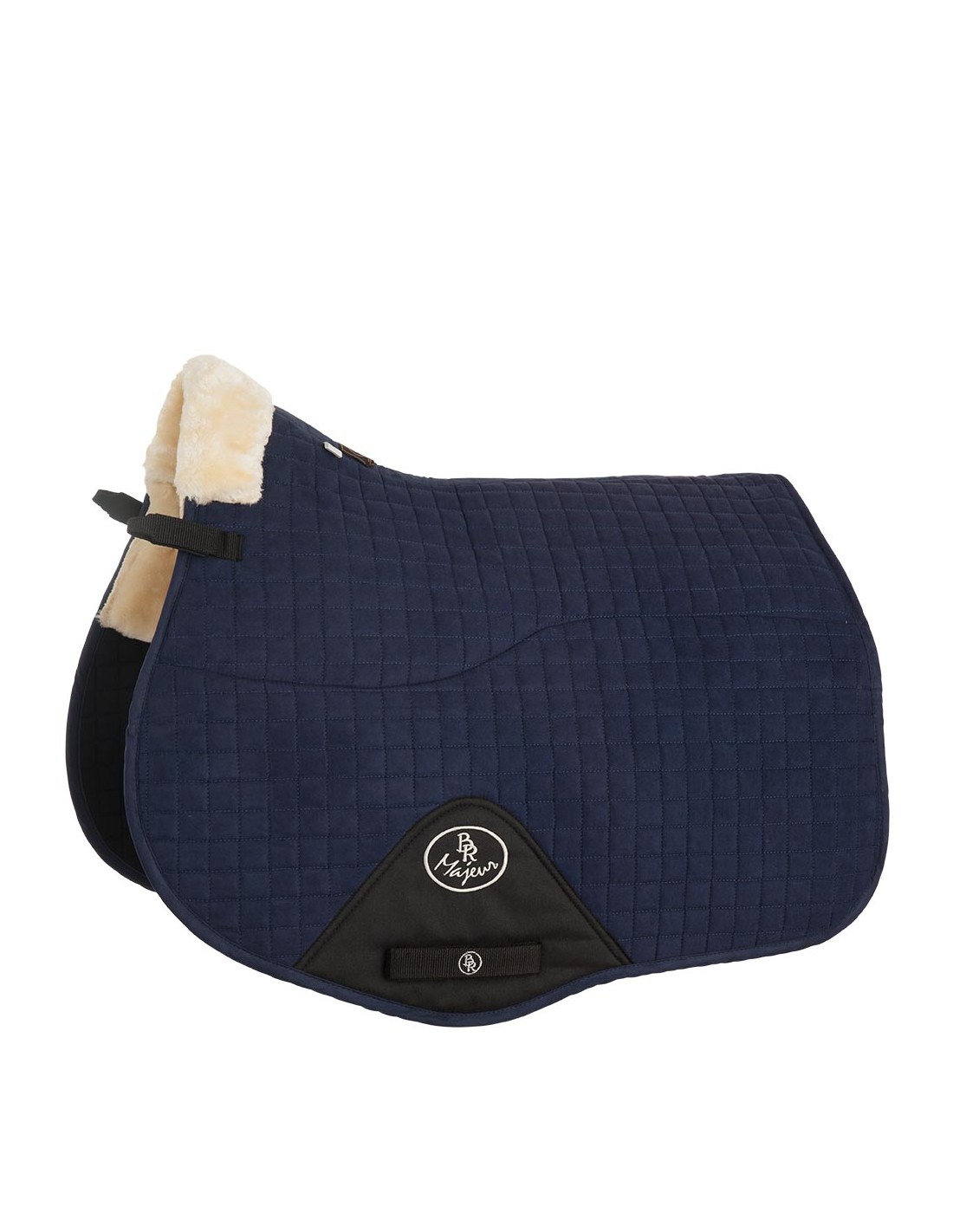 Ce tapis de selle de luxe en suédine matelassée est doublé, sous le garrot et sur la partie du dos, en peau de mouton synthétique (100 % polyester), qui est difficile à distinguer de la peau de mouton véritable. La peau de mouton continue jusqu’au milieu du tapis de selle. Cette variante qui respecte le mouton est super douce, légère, respirante et particulièrement facile à entretenir. La fourrure synthétique est lavable en machine à 30° C et peut également être mise dans le sèche-linge. De plus le matériau garde longtemps son bel aspect et ne se détache pas. Le tapis de selle a un rembourrage de 700 g en mousse de 8 mm et une doublure mesh Cooldry régulatrice d’humidité. Le tapis de selle a également une couture dorsale de forme anatomique, de sorte qu’il y a moins de pression sur les vertèbres et sur le garrot. Le tapis de selle absorbe les chocs et cela assure un meilleur confort pour le cavalier ainsi que pour le cheval. Le tapis de selle est pourvu de passants de sangle et de passants pour contre-sanglons réglables avec bande velcro, avec un renforcement supplémentaire sous le passant de contre-sanglon.