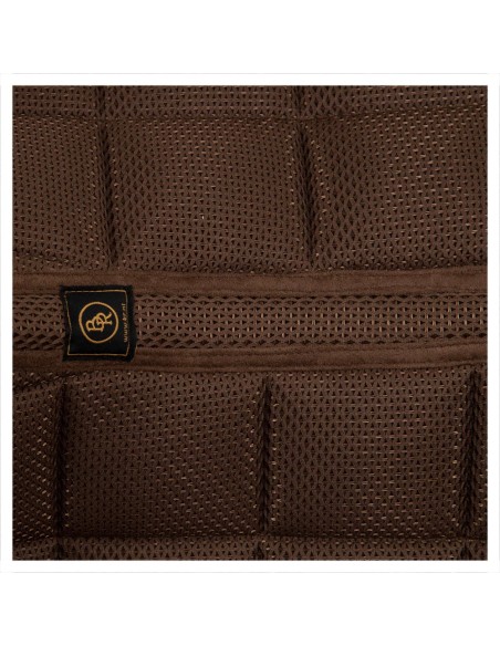 Ce tapis de selle extrêmement respirant est fait de 3D-mesh et respire le style et les avantages technologiques. Le tapis de selle a un rembourrage en polyfill 340 g et une doublure en Coolmax® rafraîchissant à séchage rapide. Le matériel empêche la surchauffe et assure une circulation d’aire optimale. Grâce à la couture dorsale de forme anatomique et au garrot échancré il y a moins de pression sur les vertèbres et sur le garrot.