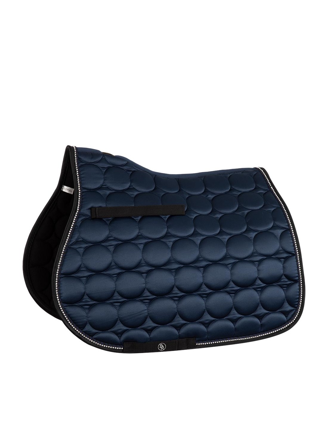 Le tapis de selle en satin polyester Satin Dream a un piquage circulaire et est fini avec un galon bicolore, une rangée de pierres brillantes et un galon contrastant. Un rembourrage en 300 grammes de polyfill et en 10 mm de mousse assure une distribution proportionnelle de la pression et la doublure Coolplus assure une bonne régulation de l’humidité.