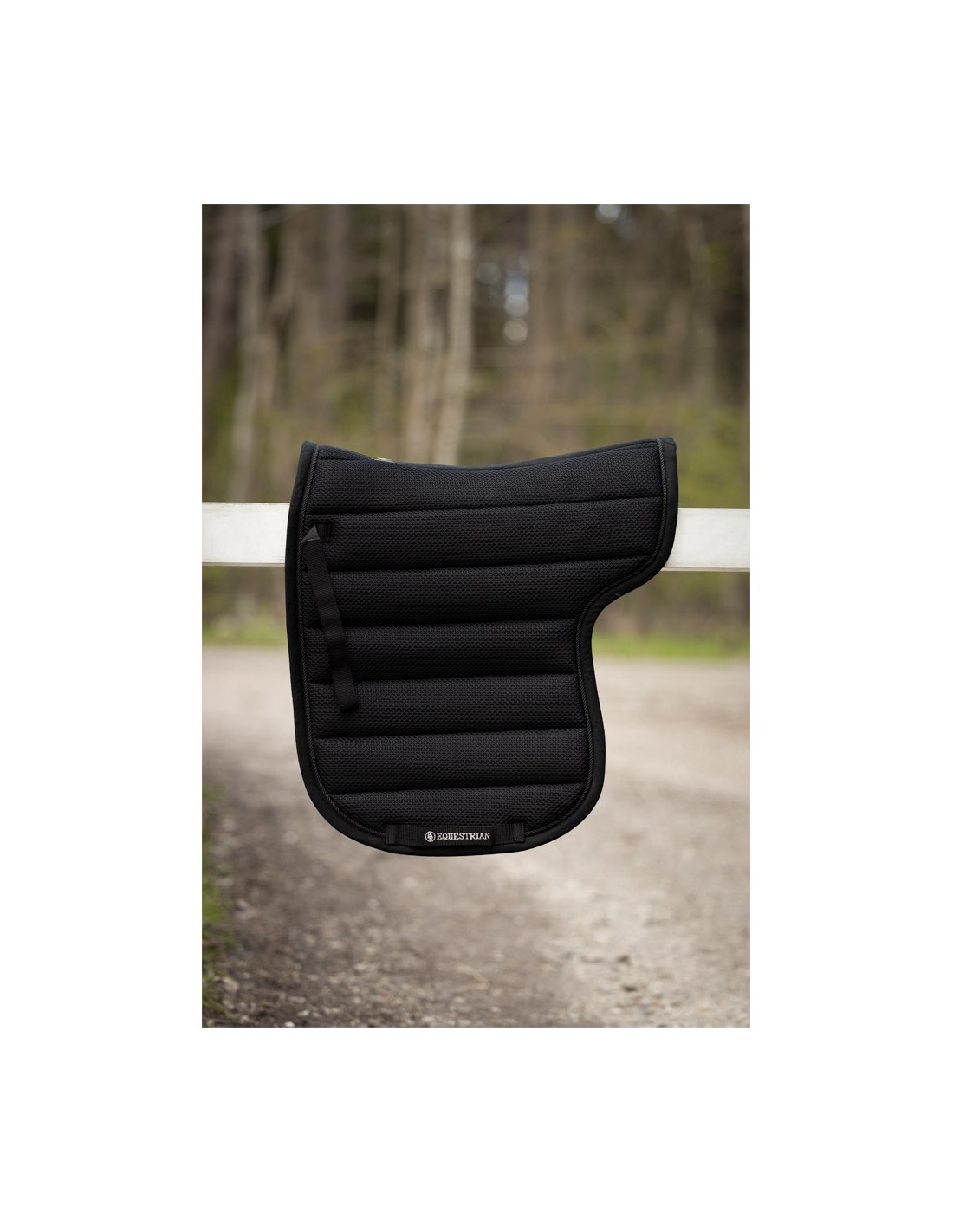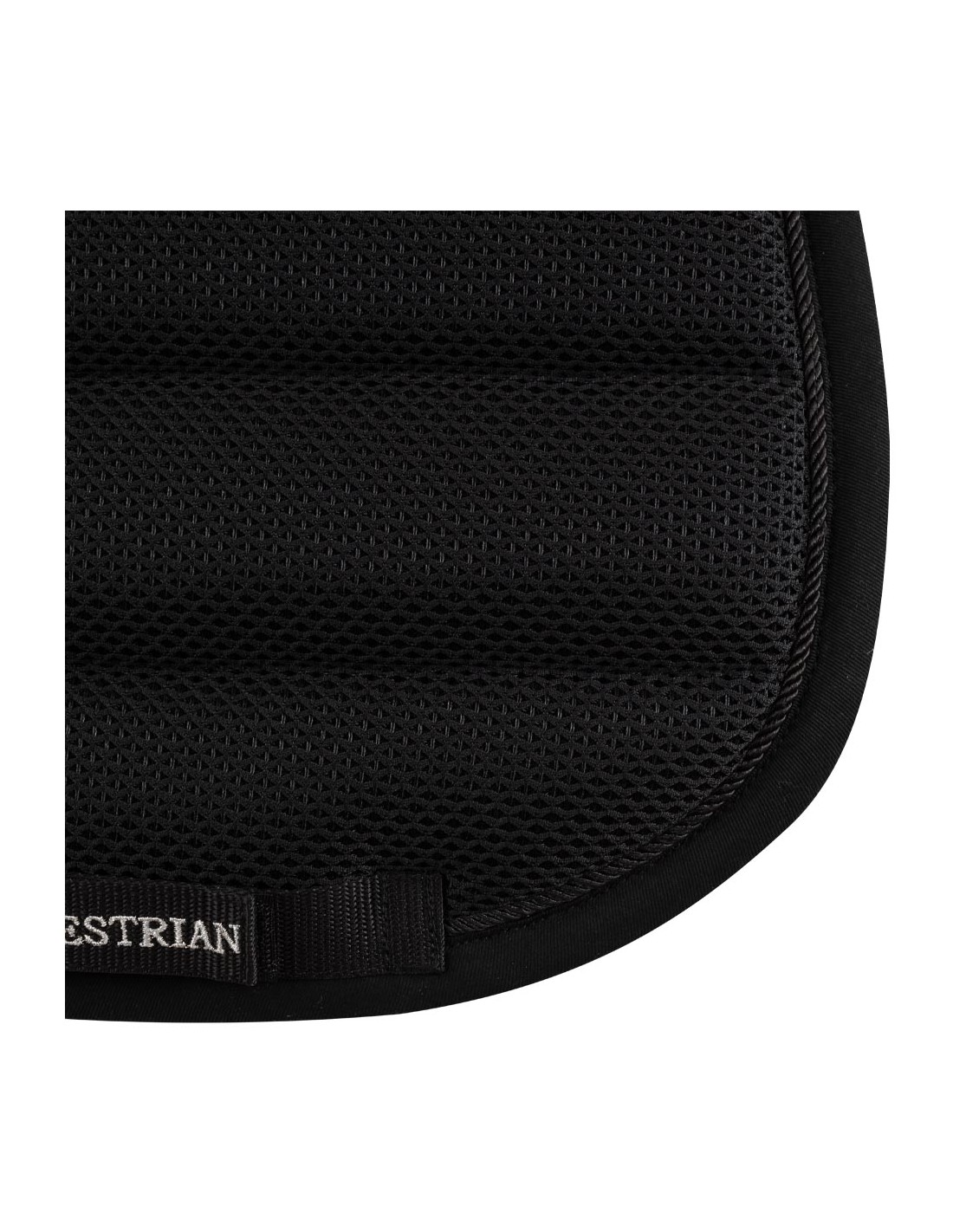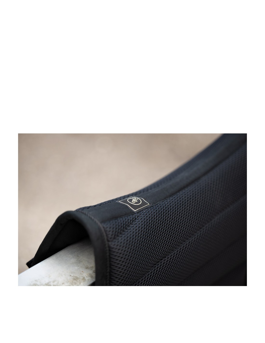 Le tapis de selle a un remplissage doux de 300 g de polypadding et de 10 mm de mousse pour une bonne absorption des chocs. Le tapis de selle est doublé d'une doublure qui évacue l'humidité, est respirante et extensible avec un motif antidérapant en forme d'ananas. En outre, le tapis de selle est équipé de passants de sangle et de passants pour les contre-sanglons avec Velcro et fini avec une garniture de cordon élégante et une broderie sur le passants pour les contre-sanglons.