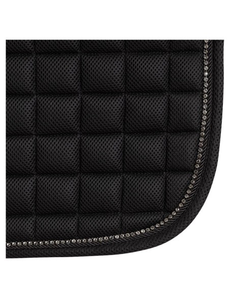 De forme anatomique, extrêmement respirant, régulant l’humidité et séchant rapidement : telles sont les caractéristiques du tapis de selle Ace Flow qui offrent un confort optimal à votre cheval. De plus, le tapis de selle est en partie bordé d’un passepoil assorti et d’une chaîne de pierres brillantes.