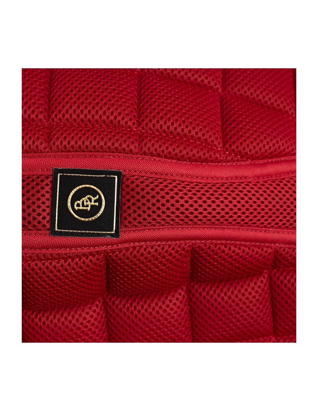 Ce tapis de selle confortable est doublé de Cooldry respirant qui absorbe très bien l’humidité, la transporte vers l’extérieur et a un effet de séchage rapide. L’extérieur en mesh renforce ces propriétés pour un niveau de confort encore plus élevé. Grâce à la couture dorsale de forme anatomique il y a moins de pression sur les vertèbres et sur le garrot. Le tapis de selle a un piquage carreaux élégant et est pourvu de passants de sangle et de contre-sanglons réglables avec bande velcro, avec un renforcement supplémentaire sous le passant de contre-sanglon.