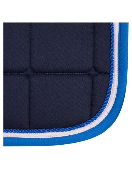 Luxueux tapis de selle en polyester-coton croisé avec garnissage antichoc fait de feutre 700 g et de mousse de 10 mm d’épaisseur. La doublure Cool Plus présente d’excellentes propriétés régulatrices de l’humidité et respirantes et la forme anatomique de la couture dorsale réduit les risques de pression sur la colonne vertébrale et sur le garrot. Le tapis de selle est enjolivé par un cordon passepoil et une bande décorative et par son piquage matelassé. Passants de sangle avec Velcro. Lavable en machine à 30 °C. Ce tapis de selle se combine parfaitement avec plusieurs autres produits de même couleur dans la gamme Xcellence.