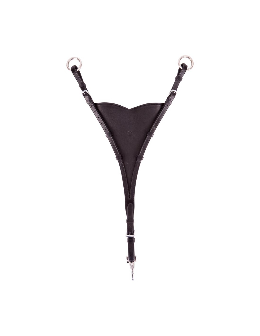 Fourche de martingale fermée réglable en cuire européen de qualité supérieure. Fourche de martingale amovible par un mousqueton. La section fermée est en cuir pleine fleur européen de qualité supérieure lisse et souple et assure la stabilité de la position. Empêche les chevaux de marcher sur la fourche ou de la mordre. La martingale empêche le cheval de lever brutalement la tête. Convient aux bricoles BR Heywood (référence 232042) et Leeds (référence 232041)