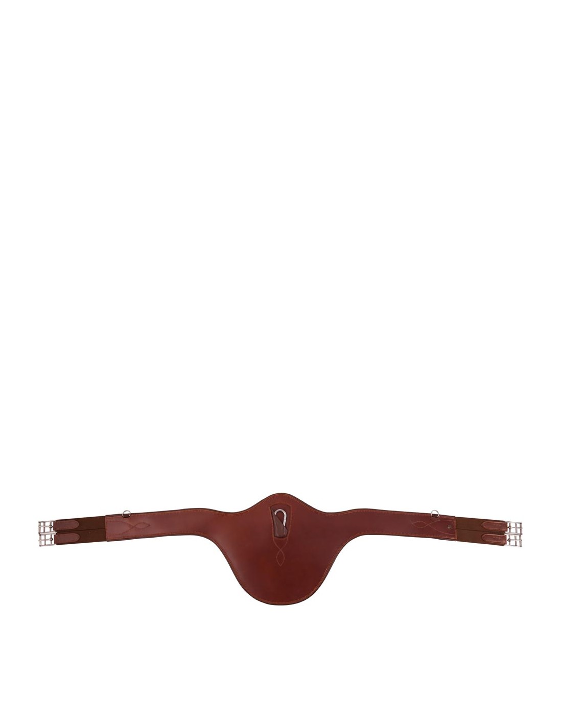 Sangle d'obstacle en cuir avec bavette fixe, un anneau et une courroie pour fixer d'éventuels enrênements divers. La sangle possède également un anneau de chaque côté pour fixer la bricole ou le collier de chasse. La sangle est pourvue de boucles à rouleaux inoxydables et de coutures décoratives.