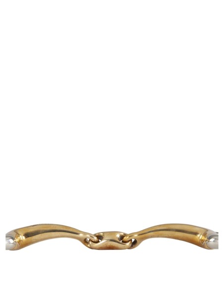 Ce mors à olive double brisure de haute qualité est réalisé en Cuprigan massif avec des anneaux en inox. Le Cuprigan est un alliage composé de 89 % de cuivre, de 7 % d’aluminium, de 3 % de fer et de 1 % de zinc. Le processus d'oxydation du matériau répand une odeur et un goût agréables. La conception anatomique épouse la forme de la bouche du cheval, créant ainsi une répartition de la pression douce et uniforme. La combinaison de la conception et de l’unique composition du Cuprigan permettent de stimuler la mastication et la salivation, de sorte qu’il en résulte une liaison délicate avec la bouche sensible du cheval. Le mors a une action douce dans la bouche. L’épaisseur du canon est de 14 mm et le diamètre des rondelles de mors ovales est de 65 mm.
