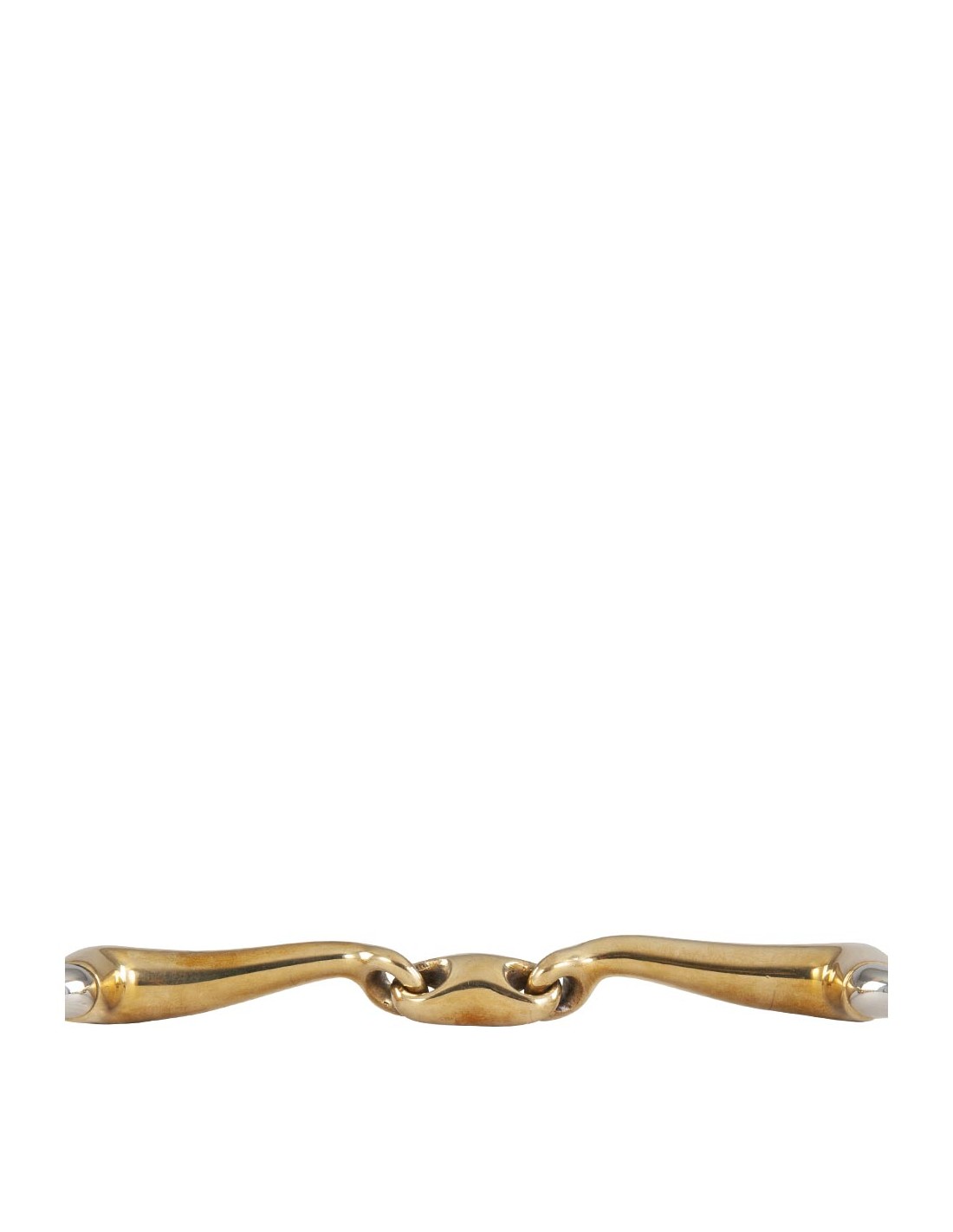 Ce mors à olive double brisure de haute qualité est réalisé en Cuprigan massif avec des anneaux en inox. Le Cuprigan est un alliage composé de 89 % de cuivre, de 7 % d’aluminium, de 3 % de fer et de 1 % de zinc. Le processus d'oxydation du matériau répand une odeur et un goût agréables. La conception anatomique épouse la forme de la bouche du cheval, créant ainsi une répartition de la pression douce et uniforme. Grâce à sa forme arrondie, ce canon offre d'avantage d'espace des deux côtés de la langue. La combinaison de la conception et de l’unique composition du Cuprigan permettent de stimuler la mastication et la salivation, de sorte qu’il en résulte une liaison délicate avec la bouche sensible du cheval. Le mors a une action douce dans la bouche. L’épaisseur du canon est de 14 mm et le diamètre des rondelles de mors ovales est de 65 mm.