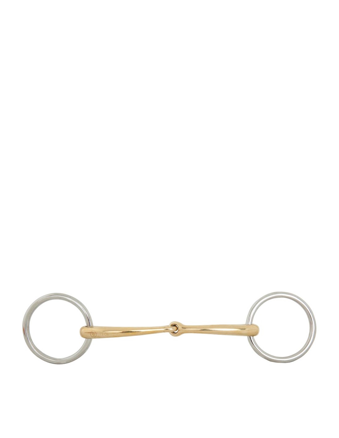 Ce mors de filet de bride simple brisure de haute qualité (mors à anneaux) est réalisé en Cuprigan massif avec des anneaux en inox. Le Cuprigan est un alliage composé de 89 % de cuivre, de 7 % d’aluminium, de 3 % de fer et de 1 % de zinc. Le processus d'oxydation du matériau répand une odeur et un goût agréables. La conception anatomique épouse la forme de la bouche du cheval, créant ainsi une répartition de la pression douce et uniforme. La combinaison de la conception et de l’unique composition du Cuprigan permettent de stimuler la mastication et la salivation, de sorte qu’il en résulte une liaison délicate avec la bouche sensible du cheval. Le mors a une action normale dans la bouche. L’épaisseur du canon est de 12 mm et le diamètre des rondelles de mors est de 50 mm.
