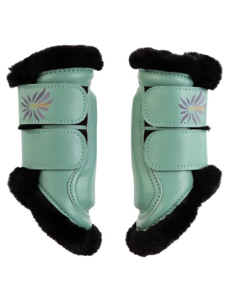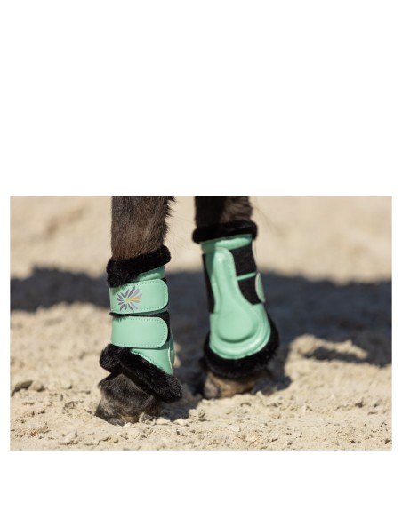 Ce guêtre a été spécialement développé pour les plus petites races de chevaux et de poneys. L'extérieur en cuir synthétique est de haute qualité et dure longtemps. L'extérieur protège la jambe du cheval contre les impacts externes, le renfort coquille épaissi offrant une protection supplémentaire. La doublure en fausse fourrure merveilleusement douce assure une répartition optimale de la pression, empêche les frottements et absorbe les chocs. Les attaches Velcro avec élastique garantissent que les protecteurs restent fermement en place. L'illustration colorée sur le Velcro donne au guêtre un effet plus ludique.