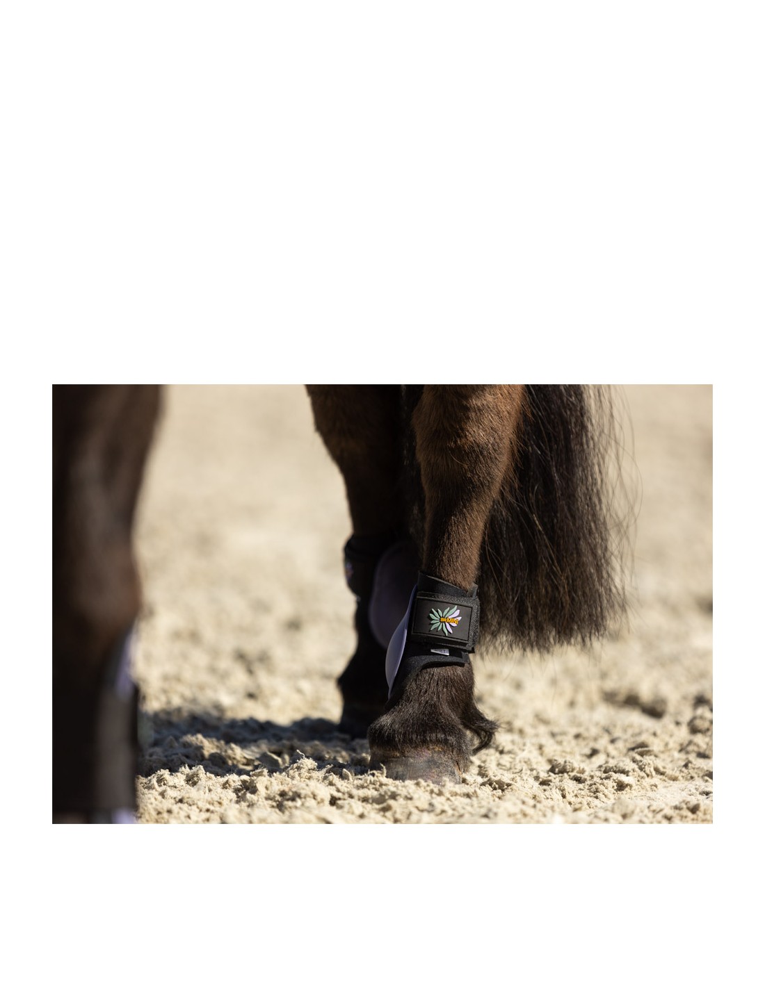 Ce protège-boulet a été spécialement développé pour les plus petites races de chevaux et de poneys. La coque extérieure dure offre une protection contre les blessures aux membres postérieurs. La doublure en néoprène (6mm) a un effet d'absorption des chocs et est agréable sur la peau du cheval. Le protège-boulet se ferme avec des fermetures à Velcro robustes et élastiques et le Velcro double couche maintient le protecteur bien serré. L'illustration colorée sur le Velcro donne au protège-boulet un effet plus ludique.