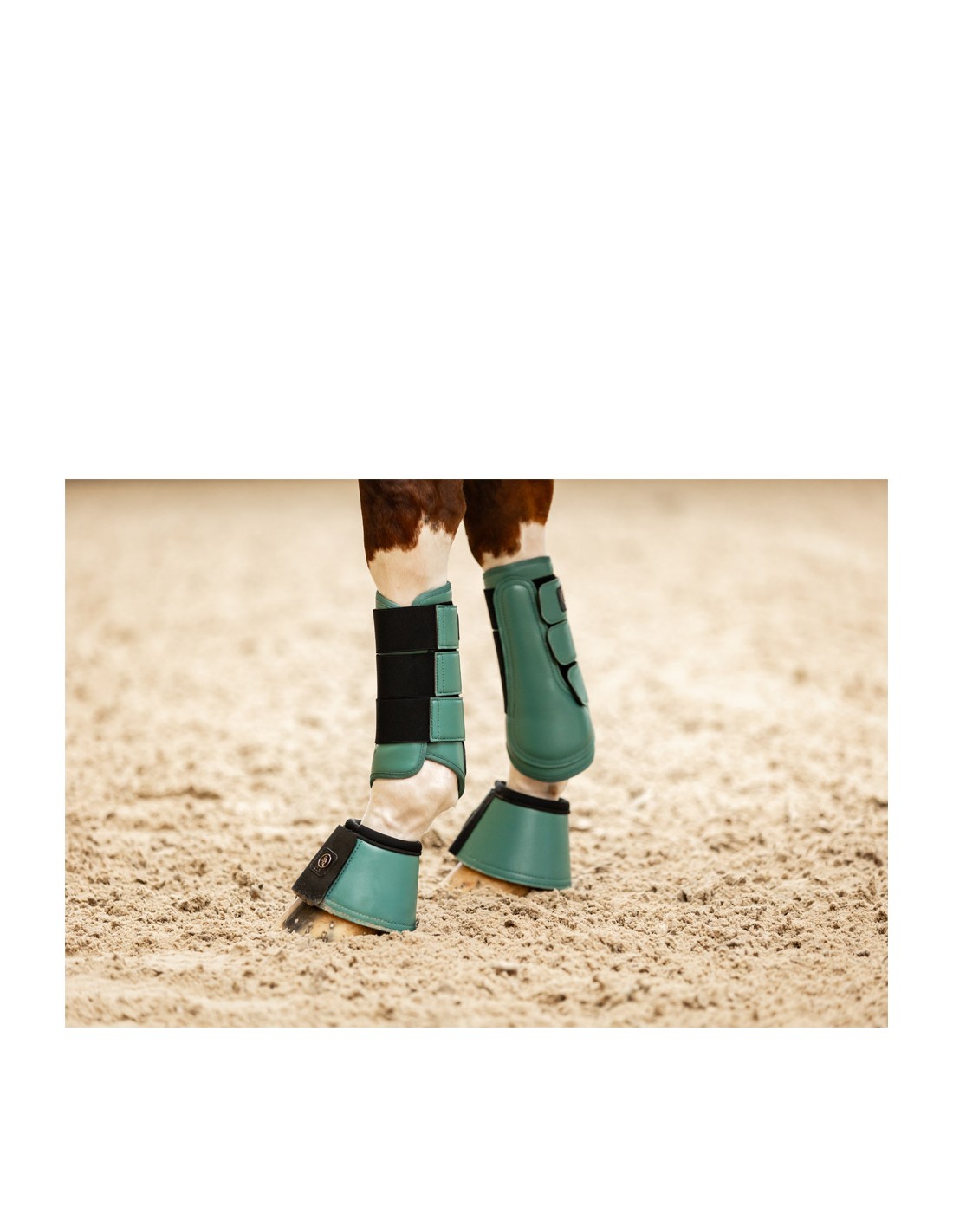 Découvrez la collection CLX. Créez de nouveaux ensembles avec des vêtements et des articles d'équitation de haute qualité dans de belles couleurs élégantes. Les cloches sont rembourrées en cuir synthétique lisse pour un look élégant. L'intérieur est doublé de néoprène (5mm) respirant et absorbant les chocs. Le bord est également recouvert de néoprène doux pour qu'il soit confortable pour la peau du cheval. Grâce au velcro double face robuste, les cloches restent fermement en place.