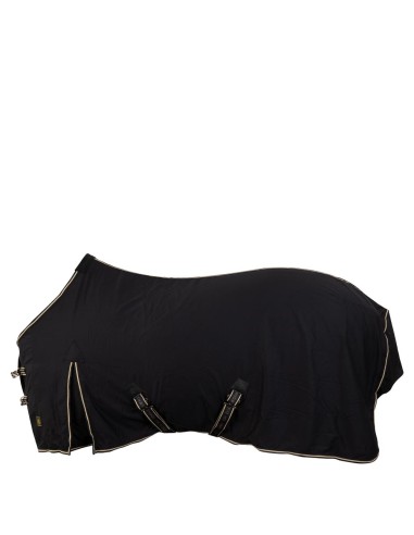 Chemise anatomique en robuste polyester-coton (65 % coton, 35 % polyester). Le poitrail est renforcé par une épaisseur supplémentaire de polyester-coton. La chemise comprend deux sangles de réglage à l’avant avec mousquetons rapides et Velcro. La sangle abdominale est renforcée grâce au patch en cuir synthétique Pu. De plus, la chemise comprend une couture dorsale double avec galonnage et une protection du garrot en fourrure polaire. Elle est également pourvue de plis d’aisance, de sous-ventrières avec bandes élastiques toutes deux réglables et amovibles et de courroies de cuisse élastiques. La bouclerie de la chemise est zinguée avec une finition argentée mate. Lavable en machine à 30 °C.