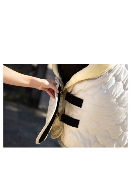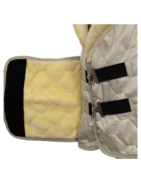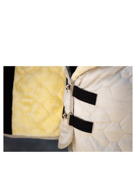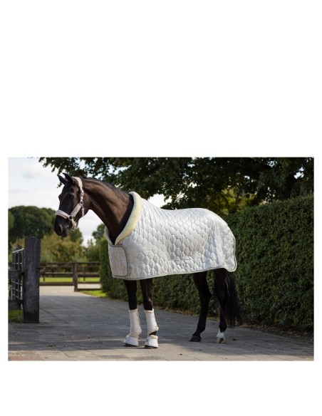 Cette belle couverture de présentation/séchante est parfaite pour donner à votre cheval un look élégant et pour le garder au chaud par temps froid après l'exercice. La transpiration est absorbée par la doublure de fausse fourrure de la couverture. Lorsqu’il fait froid notamment, les muscles de votre cheval se refroidissent rapidement lorsqu’il transpire beaucoup. Votre cheval peut avoir des courbatures si ses muscles ne restent pas bien au chaud.