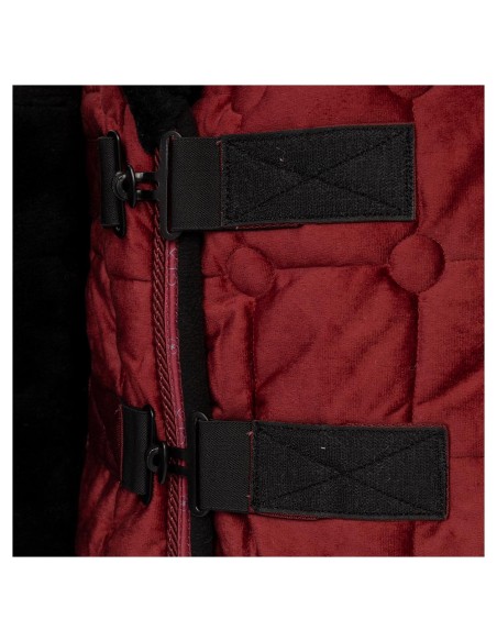 La couverture a un extérieur élégant en velours avec un piquage à carreaux avec des cercles aux coins. La couverture est finie avec une belle garniture en corde et une garniture avec CLX.