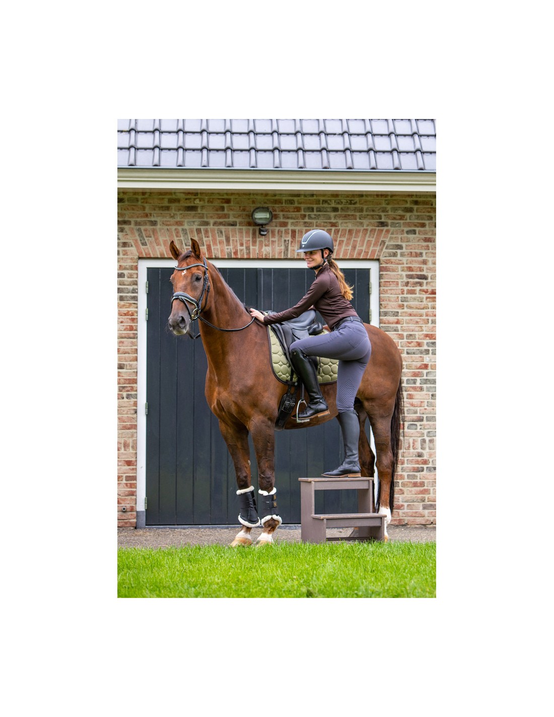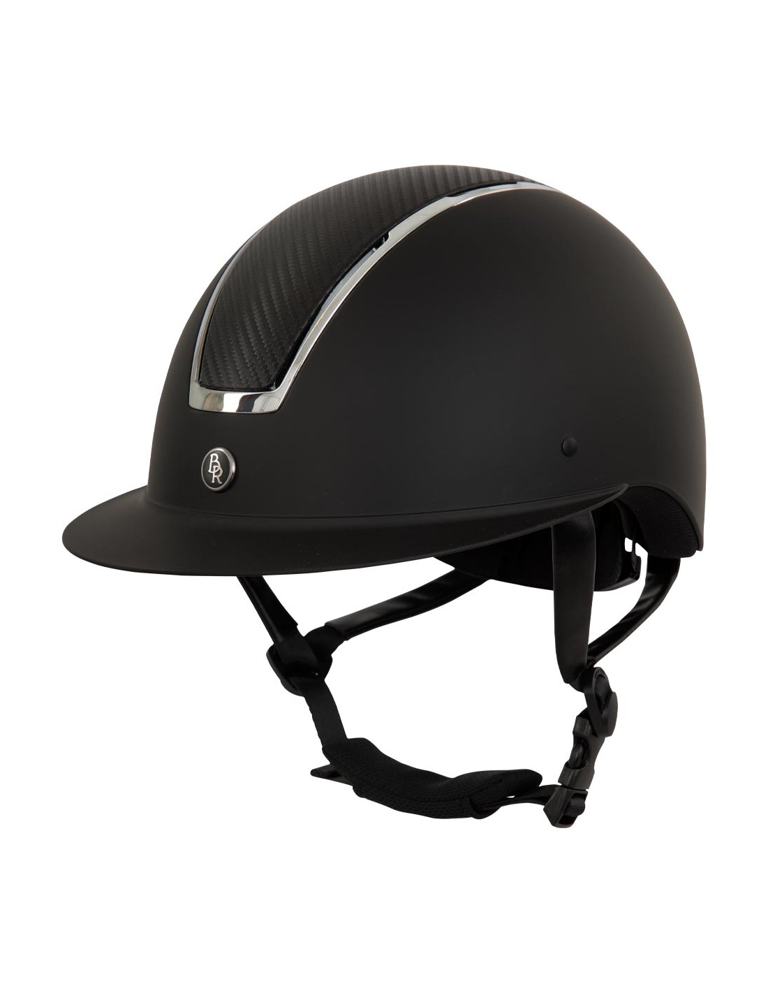 Le casque d'équitation BR Omega Microfiber Painted se distingue par sa grande visière pare-soleil et son dessus en carbone qui confèrent au casque un look sobre et épuré.