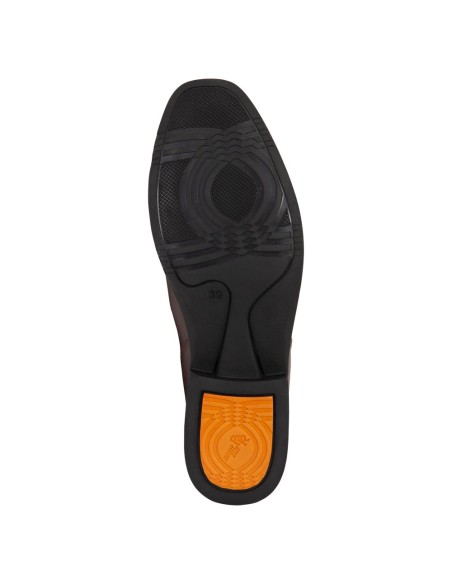 Séduisants boots imperméables Jodphur en cuir lisse européen de première qualité. Doublure en Dermo Dry antimicrobien et régulateur d’humidité pour maintenir le pied au sec et prévenir l’échauffement. La languette de la chaussure est doublée de cuir lisse pour encore plus de confort. Les lacets cirés, les inserts élastiques double épaisseur sur les deux côtés et la robuste fermeture à glissière YKK au dos permettent de chausser et de déchausser ces boots sans effort. De plus, la fermeture à glissière est protégée par un rabat en cuir avec bouton pression en haut et deux taquets d’éperons. La semelle d’usure est en caoutchouc naturel de qualité supérieure particulièrement résistant et durable. La semelle des boots Jodhpur CL+ comprend plusieurs composants. Ils contribuent conjointement à la répartition uniforme de la pression, au renforcement de la stabilité et à l’excellente absorption des chocs. L’embout dans le style brogue confère un look sophistiqué à ces boots. Fabriqué en Europe.