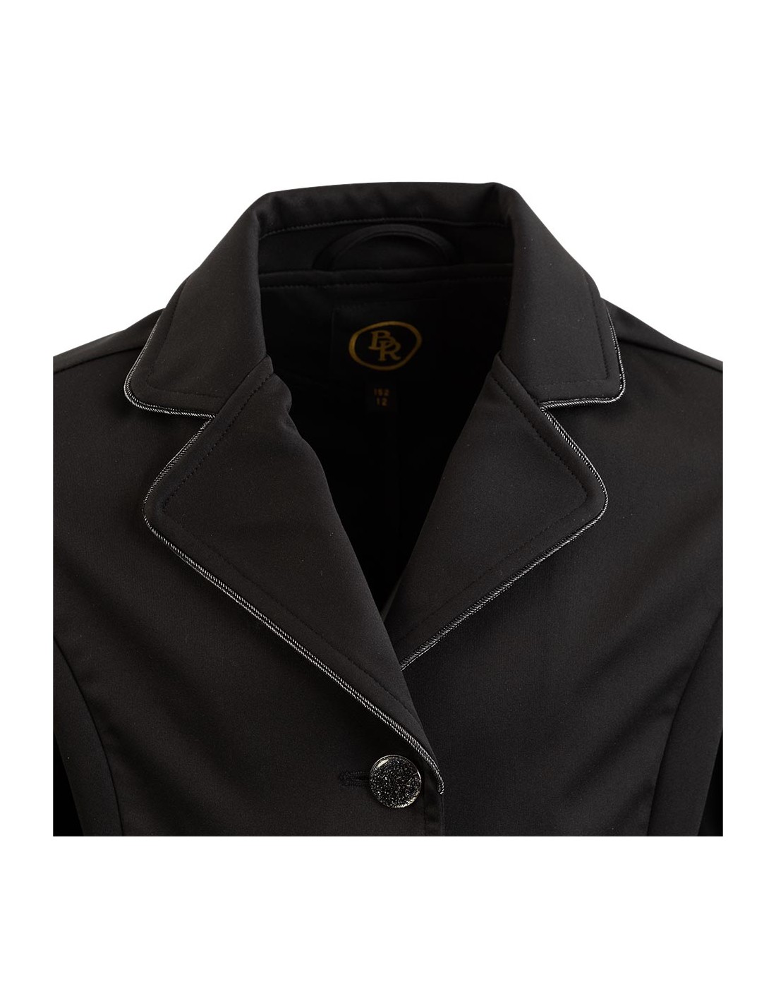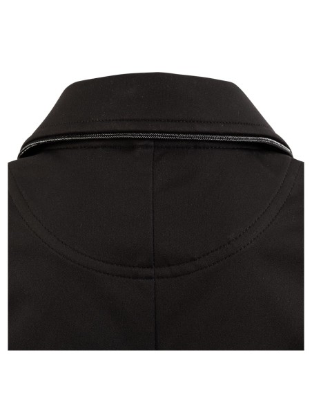 Cette belle veste de compétition pour enfants est non seulement agréable à porter, mais aussi élégante grâce au passepoil noir brillant le long du col et au-dessus des poches et aux boutons noirs pailletés.