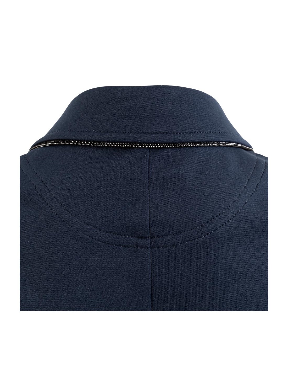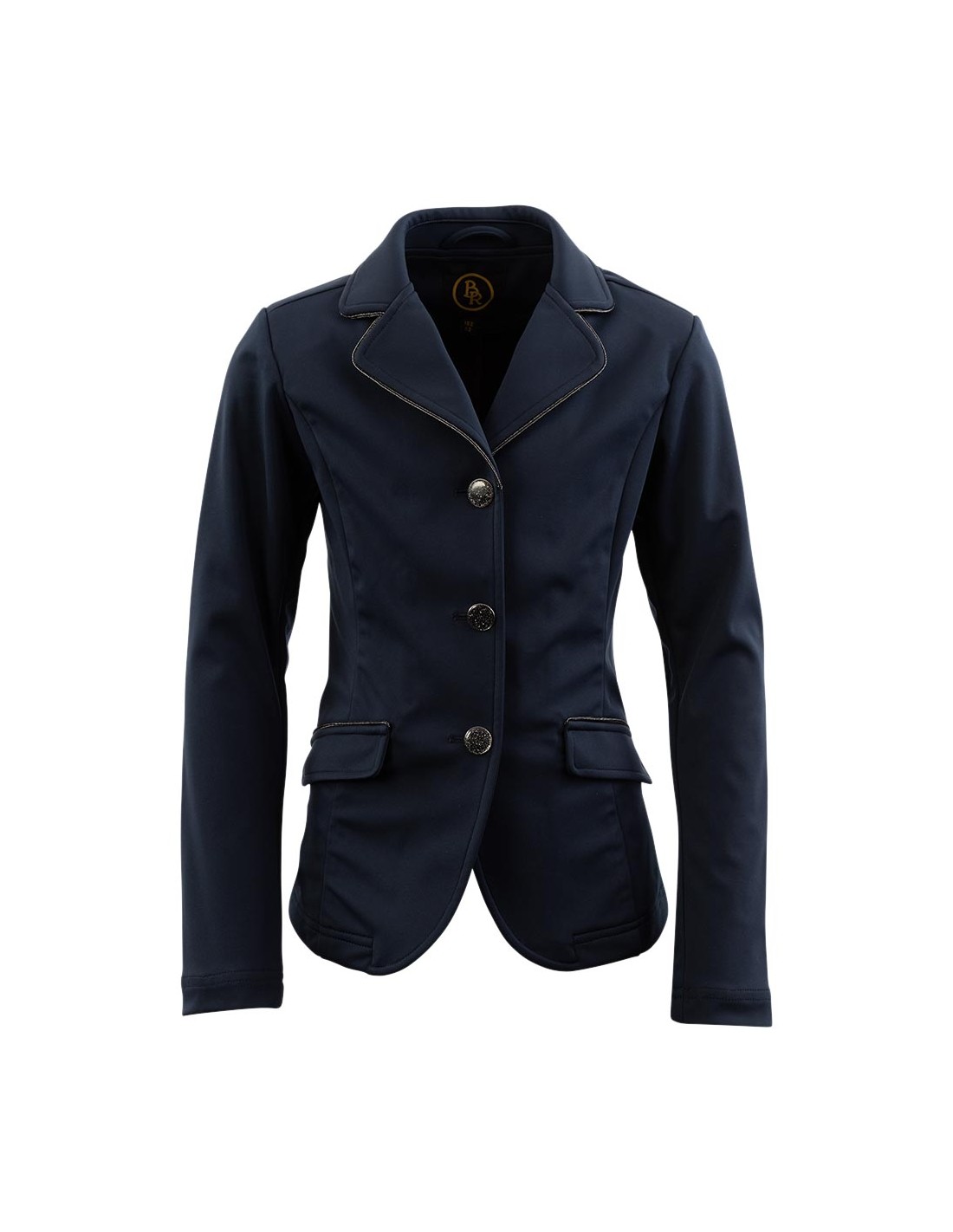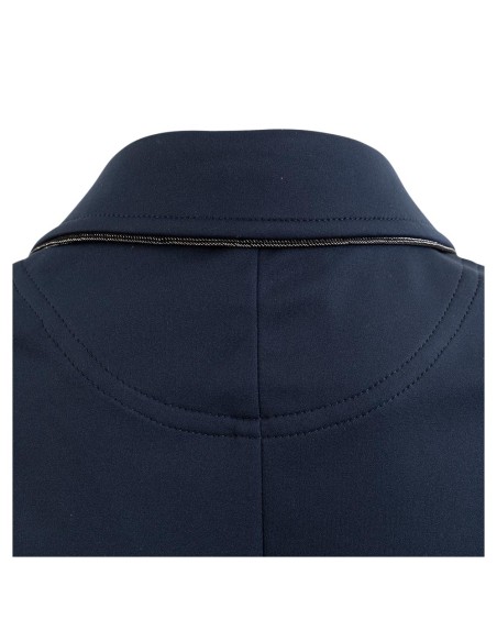 Cette belle veste de compétition pour enfants est non seulement agréable à porter, mais aussi élégante grâce au passepoil noir brillant le long du col et au-dessus des poches et aux boutons noirs pailletés.