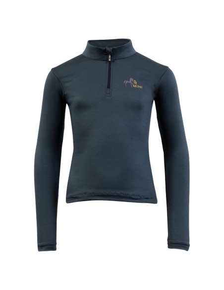 Cette chemise à manches longues confortable et colorée est idéale pour les cavaliers actifs en raison des propriétés d'évacuation de l'humidité du tissu. Le tissu est également extensible, ce qui assure un ajustement agréable et ajusté. La chemise est dotée d'un col montant avec fermeture éclair . La fermeture éclair fine et gracieuse est recouverte d'un rabat de protection pour protéger la peau. Grâce aux couleurs gaies et à l'imprimé coloré et subtil sur la poitrine, le petit cavalier fera fondre tous les cœurs sur le centre équestre.
