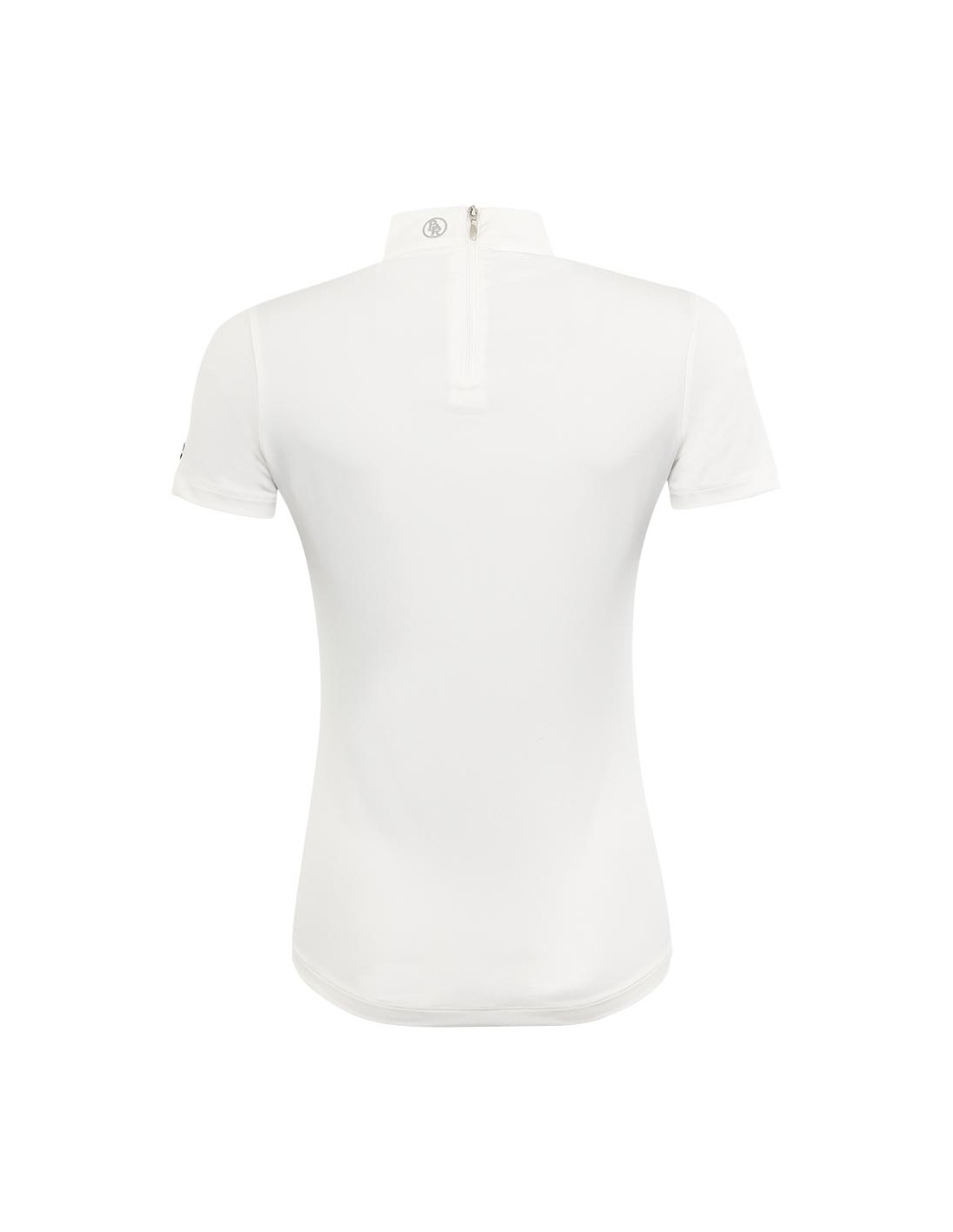 La chemise de compétition Derby est confortable et présente des détails argentés tels que l'imprimé pailleté et les logos de la marque sur la manche et le col. Il y a une fermeture éclair à l'arrière du col blanc.