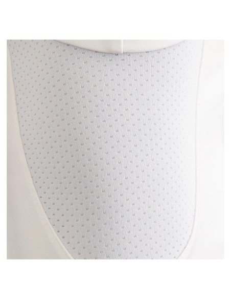 Cette chemise de compétition aérée et élastique convient aussi bien aux hommes qu'aux garçons. Le tissu en mesh se trouve sous les aisselles pour une ventilation supplémentaire. La chemise a un col polo et une fermeture à bouton avec quatre boutons et au bas de la fermeture à bouton se trouve une boucle qui maintient le plastron en place pendant la conduite.