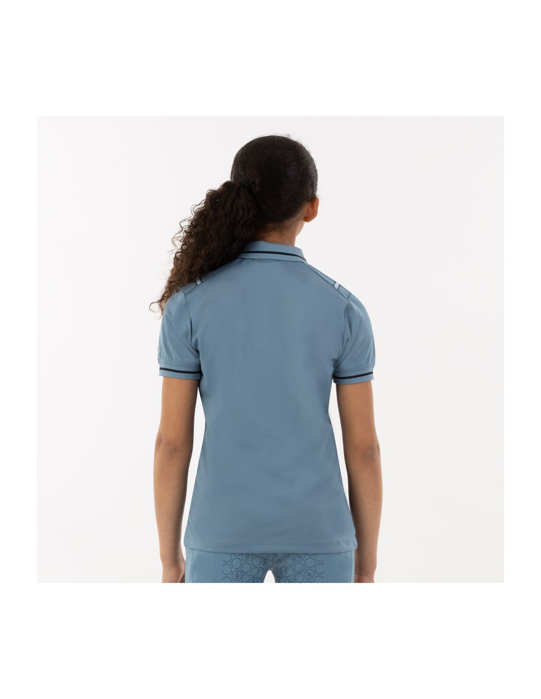 • Ribbed polo collar and sleeve with contrast stripe